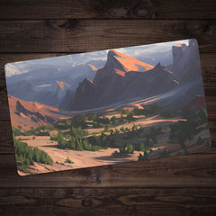 Standard Playmat measures at 24” x 14” inches and is 1/16 of an inch thick. It’s made with a smooth cloth top and strong rubber backing.