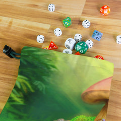 Always gaming on the go? Carry everything you need and more using our specially crafted dice bag. But this bag is designed to hold more than just dice. We make it so you can carry other essential accessories and gear with your dice, including deck boxes, life counters, extra sleeves, and pens. Quality is just as important as quantity, which is why our dice bags are crafted using premium material as well. Featuring a soft inner lining and microfiber on the inside and vibrant pre-designed artwork on the outside, our dice bag has an amazing look and feel to it!