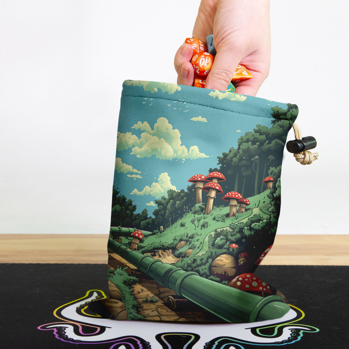 CVLPRITAlways gaming on the go? Carry everything you need and more using our specially crafted dice bag. But this bag is designed to hold more than just dice. We make it so you can carry other essential accessories and gear with your dice, including deck boxes, life counters, extra sleeves, and pens. Quality is just as important as quantity, which is why our dice bags are crafted using premium material as well. Featuring a soft inner lining and microfiber on the inside and vibrant pre-designed artwork on the outside, our dice bag has an amazing look and feel to it!