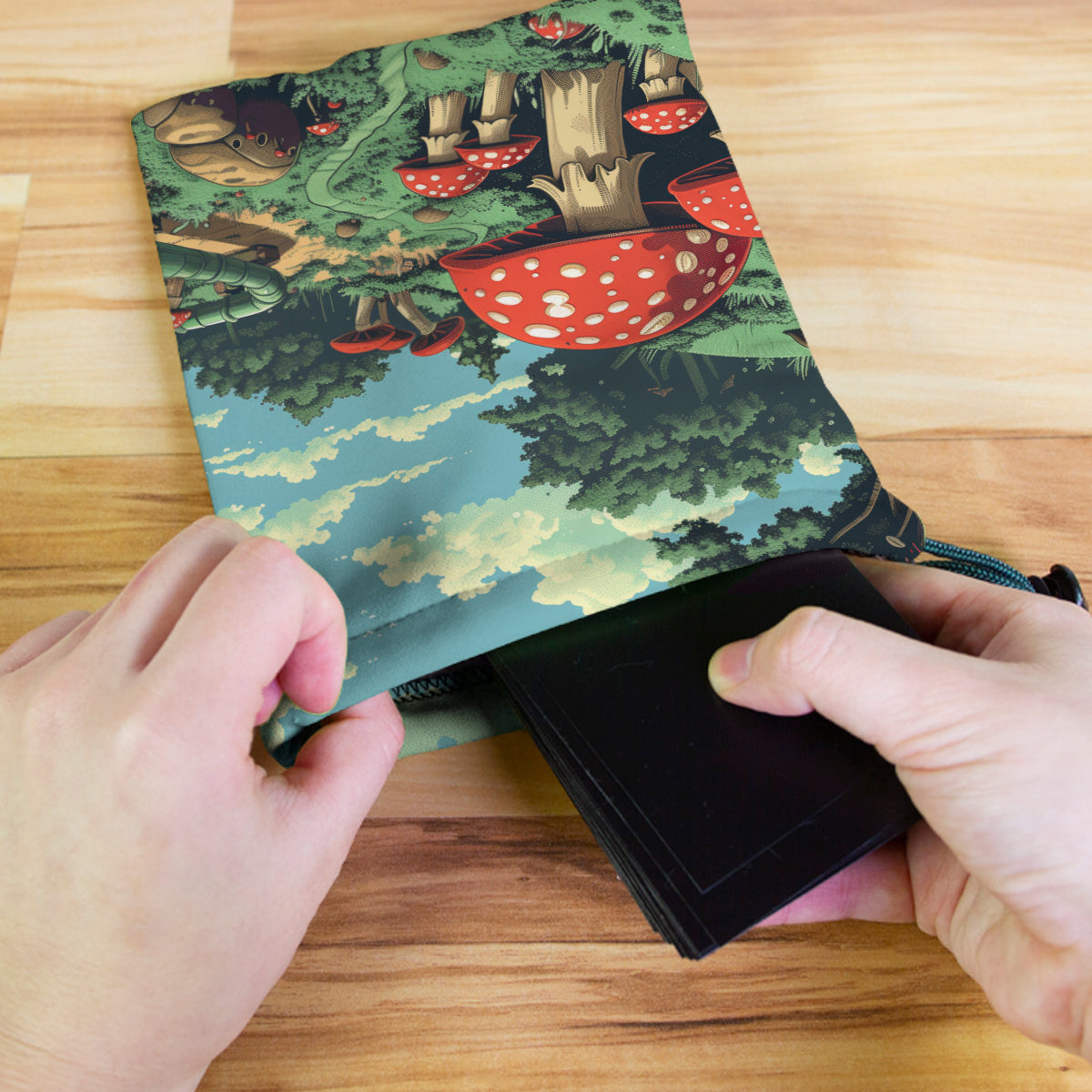 Always gaming on the go? Carry everything you need and more using our specially crafted dice bag. But this bag is designed to hold more than just dice. We make it so you can carry other essential accessories and gear with your dice, including deck boxes, life counters, extra sleeves, and pens. Quality is just as important as quantity, which is why our dice bags are crafted using premium material as well. Featuring a soft inner lining and microfiber on the inside and vibrant pre-designed artwork on the outside, our dice bag has an amazing look and feel to it!