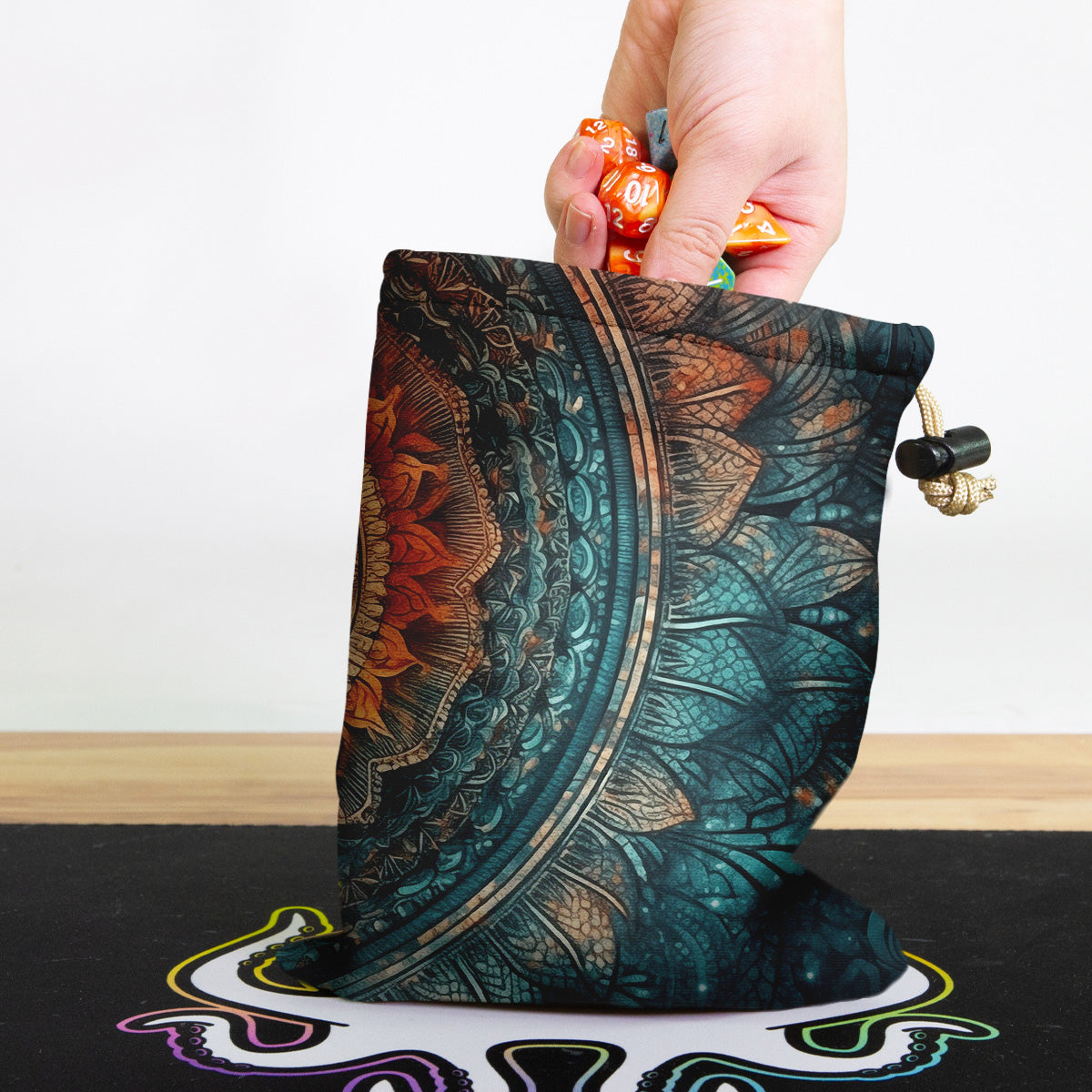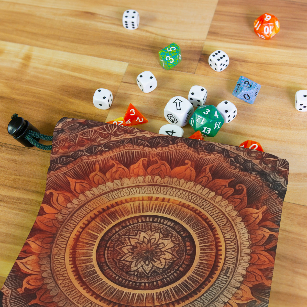 Natural Nexus DesignsAlways gaming on the go? Carry everything you need and more using our specially crafted dice bag. But this bag is designed to hold more than just dice. We make it so you can carry other essential accessories and gear with your dice, including deck boxes, life counters, extra sleeves, and pens. Quality is just as important as quantity, which is why our dice bags are crafted using premium material as well. Featuring a soft inner lining and microfiber on the inside and vibrant pre-designed artwork on the outside, our dice bag has an amazing look and feel to it!