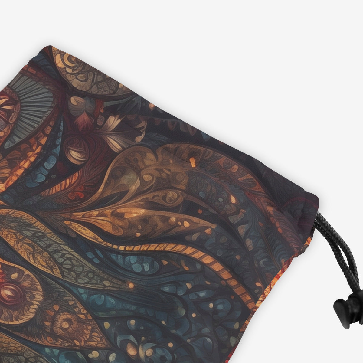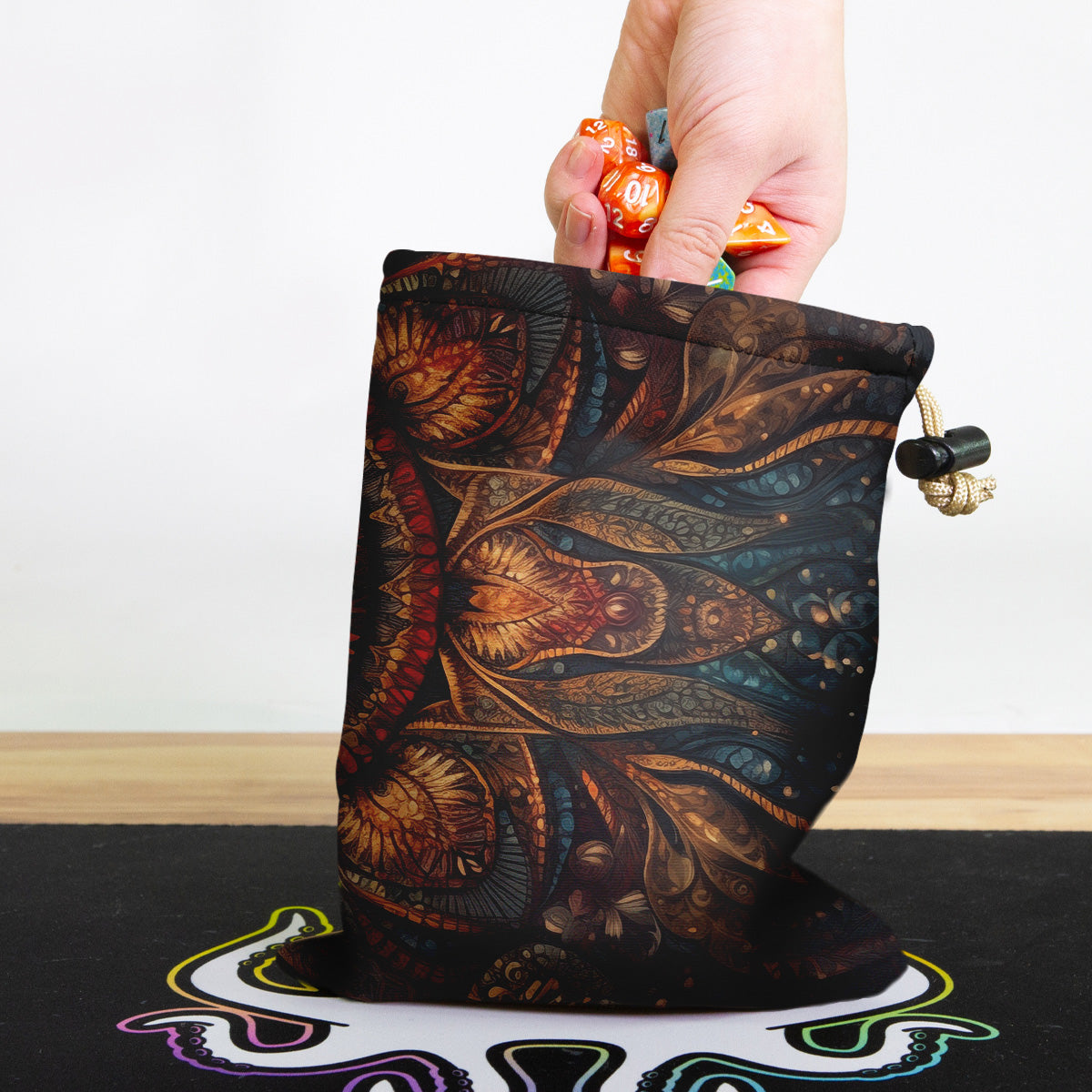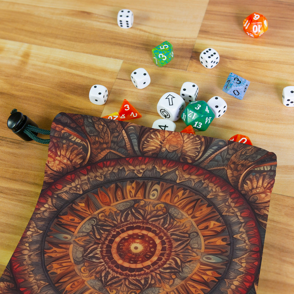 Natural Nexus DesignsAlways gaming on the go? Carry everything you need and more using our specially crafted dice bag. But this bag is designed to hold more than just dice. We make it so you can carry other essential accessories and gear with your dice, including deck boxes, life counters, extra sleeves, and pens. Quality is just as important as quantity, which is why our dice bags are crafted using premium material as well. Featuring a soft inner lining and microfiber on the inside and vibrant pre-designed artwork on the outside, our dice bag has an amazing look and feel to it!