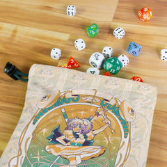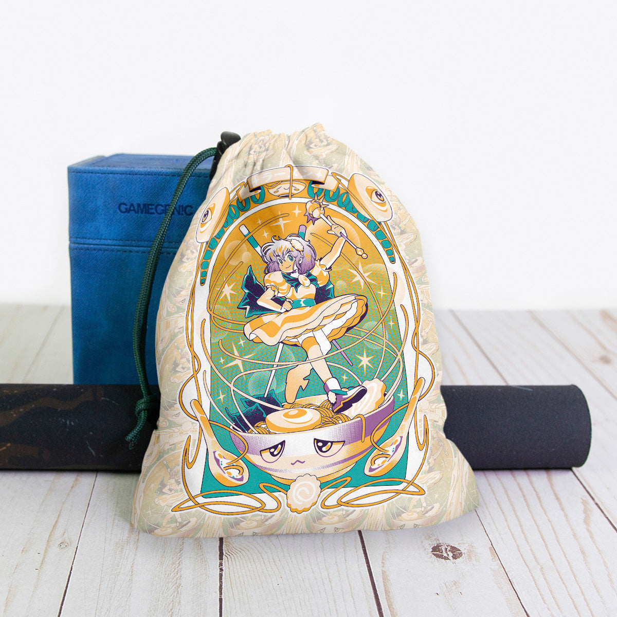 IlustrataAlways gaming on the go? Carry everything you need and more using our specially crafted dice bag. But this bag is designed to hold more than just dice. We make it so you can carry other essential accessories and gear with your dice, including deck boxes, life counters, extra sleeves, and pens. Quality is just as important as quantity, which is why our dice bags are crafted using premium material as well. Featuring a soft inner lining and microfiber on the inside and vibrant pre-designed artwork on the outside, our dice bag has an amazing look and feel to it!