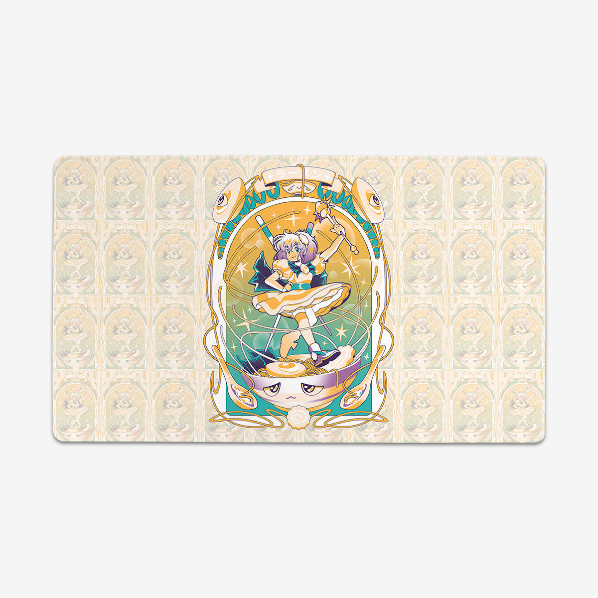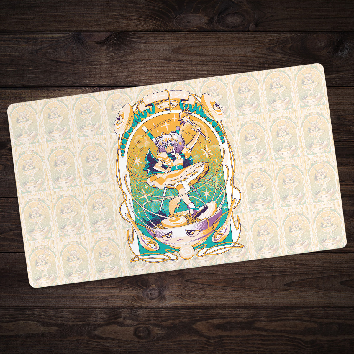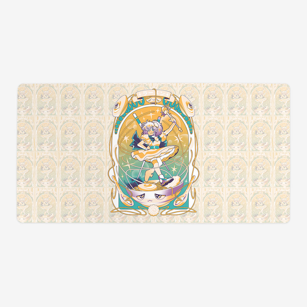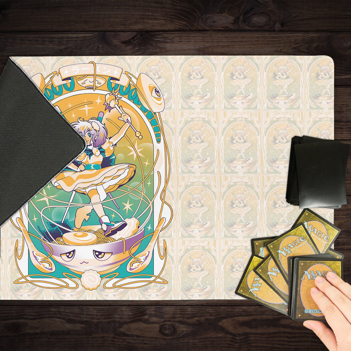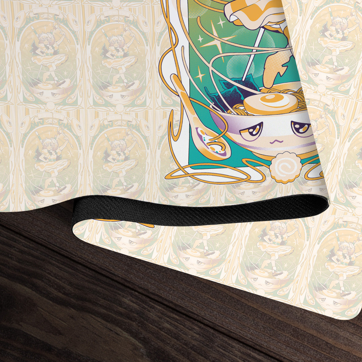 Let flavor and fun collide with Ilustrata’s Noodle Girl Playmat! Elevate your gaming experience to a whole new level as you journey across a whimsical realm of steaming ramen rivers and soaring dumpling peaks. This playmat isn't just a gaming accessory – it's a culinary quest for victory! Whether you're strategizing with your fellow adventurers or battling foes in a digital arena, let the adorable Noodle Girl be your guide. With her mischievous wink and noodle lasso in hand, she's here to ensure your gaming sessions are overflowing with excitement and a dash of soy-sauce silliness. Get ready to roll the dice, draw your cards, and savor every moment on this playmat!