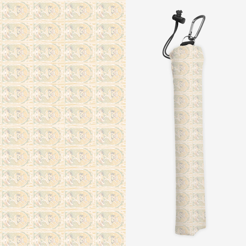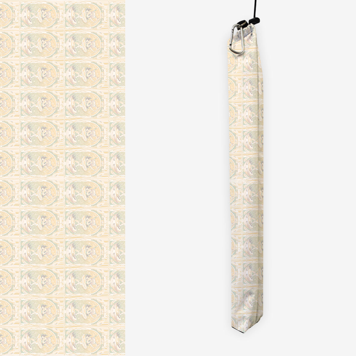 Playmat Bags are specifically designed to hold your mats in style. They are large enough to carry up to two mats. They are coated to be water resistant and include a strap with carabiner for carrying on your backpack. Our bags are hand made in house, and to order. A design that is vertical or patterned would be best for this type of product.