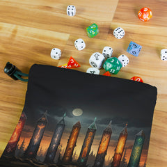 Always gaming on the go? Carry everything you need and more using our specially crafted dice bag. But this bag is designed to hold more than just dice. We make it so you can carry other essential accessories and gear with your dice, including deck boxes, life counters, extra sleeves, and pens. Quality is just as important as quantity, which is why our dice bags are crafted using premium material as well. Featuring a soft inner lining and microfiber on the inside and vibrant pre-designed artwork on the outside, our dice bag has an amazing look and feel to it!