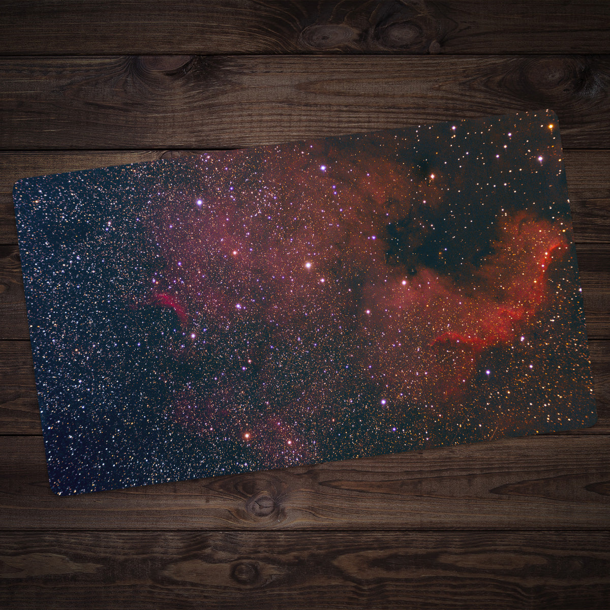 Standard Playmat measures at 24” x 14” inches and is 1/16 of an inch thick. It’s made with a smooth cloth top and strong rubber backing.