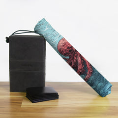 Keep your playmat in pristine condition wherever you go with one of our handcrafted playmat bags. This playmat bag is specifically designed to protect your playmat and can hold two standard sized mats at the same time (in case you need a backup or your friend forgets theirs). Each bag is made in-house and features a water-resistant coating along with a drawstring and carabiner clip for secure carrying. So you can take your game anywhere and in any weather.