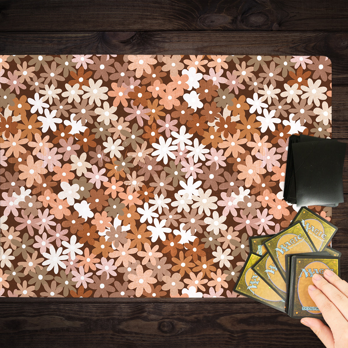 Standard Playmat measures at 24” x 14” inches and is 1/16 of an inch thick. It’s made with a smooth cloth top and strong rubber backing.