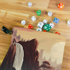 Always gaming on the go? Carry everything you need and more using our specially crafted dice bag. But this bag is designed to hold more than just dice. We make it so you can carry other essential accessories and gear with your dice, including deck boxes, life counters, extra sleeves, and pens. Quality is just as important as quantity, which is why our dice bags are crafted using premium material as well. Featuring a soft inner lining and microfiber on the inside and vibrant pre-designed artwork on the outside, our dice bag has an amazing look and feel to it!