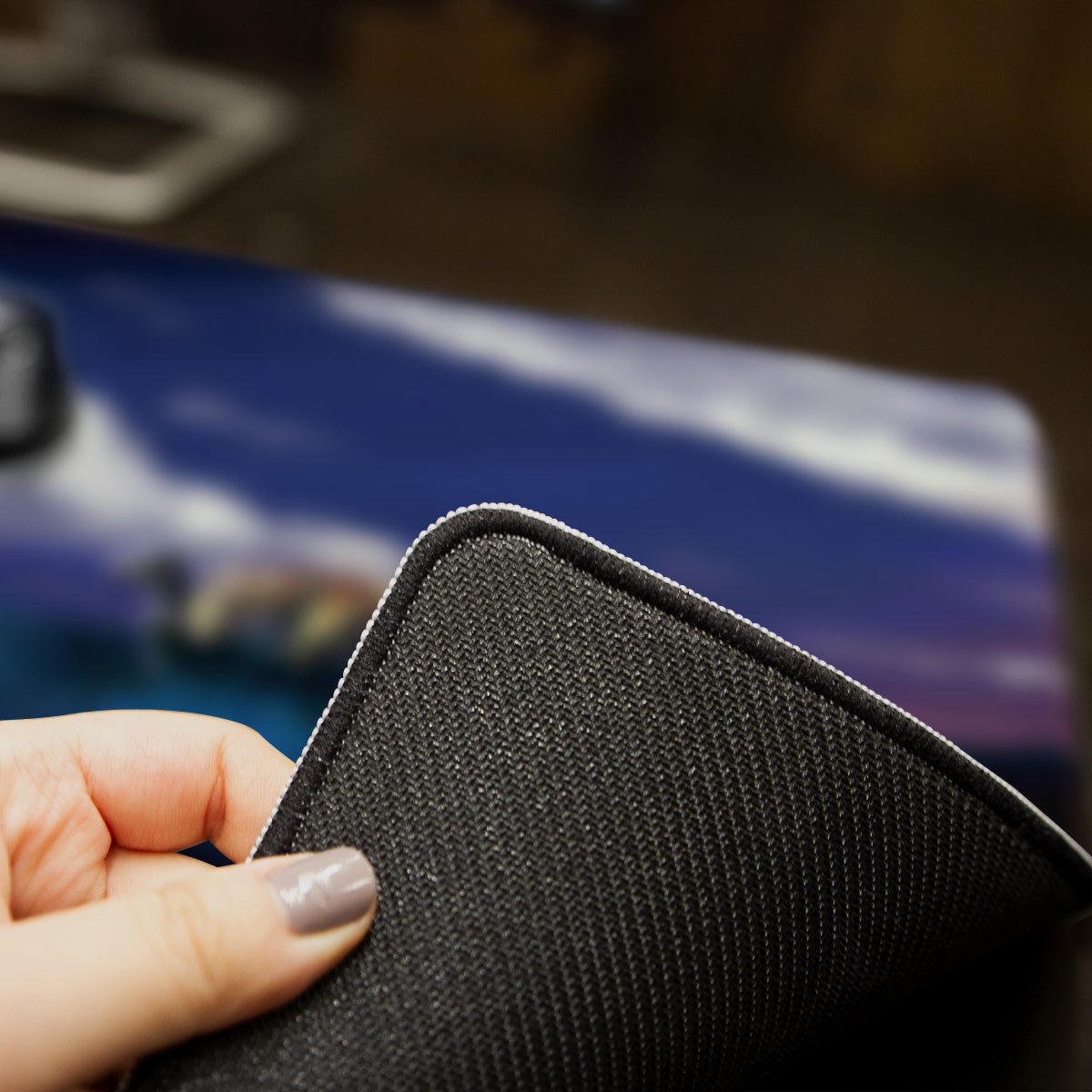 Need a new mousepad that features quality craftsmanship and creativity? Then you’ve definitely come to the right place. Our mousepads are made in-house with premium materials and unique artwork that give your battlestation the supreme look and feel that it deserves. The top is made from sleek polyester, which enables faster, more precise mouse movements. This enhanced speed and precision come in handy whether you’re working or gaming. On the bottom, there’s a strong anti-slip rubber backing that holds a nice, tight grip on your desk while you’re doing your thing. The action and traction this pad provides give you a better overall experience in completing daily tasks, deadlines, and missions of all kinds. And because we’ve added more sizing options to it, you no longer have to worry about running out of room at the worst moments either. The sizes are Classic, Large, and XL. The Classic mousepad has unstitched edges. However, the Large mousepad does include stitched edging, while the XL mousepad has both a stitched or unstitched edging option available. You can see the approximate measurements of all those sizes in the details below. We think you’ll be impressed…if you aren’t already!