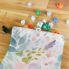 Always gaming on the go? Carry everything you need and more using our specially crafted dice bag. But this bag is designed to hold more than just dice. We make it so you can carry other essential accessories and gear with your dice, including deck boxes, life counters, extra sleeves, and pens. Quality is just as important as quantity, which is why our dice bags are crafted using premium material as well. Featuring a soft inner lining and microfiber on the inside and vibrant pre-designed artwork on the outside, our dice bag has an amazing look and feel to it!