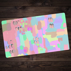 Standard Playmat measures at 24” x 14” inches and is 1/16 of an inch thick. It’s made with a smooth cloth top and strong rubber backing.