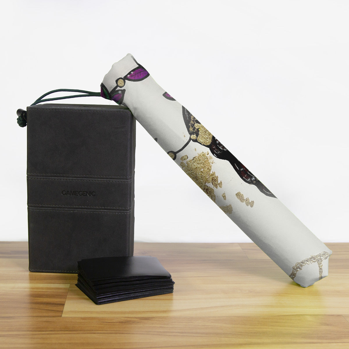 Keep your playmat in pristine condition wherever you go with one of our handcrafted playmat bags. This playmat bag is specifically designed to protect your playmat and can hold two standard sized mats at the same time (in case you need a backup or your friend forgets theirs). Each bag is made in-house and features a water-resistant coating along with a drawstring and carabiner clip for secure carrying. So you can take your game anywhere and in any weather.