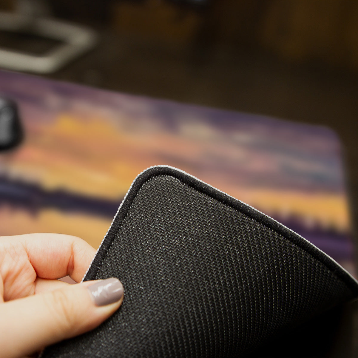 Need a new mousepad that features quality craftsmanship and creativity? Then you’ve definitely come to the right place. Our mousepads are made in-house with premium materials and unique artwork that give your battlestation the supreme look and feel that it deserves. The top is made from sleek polyester, which enables faster, more precise mouse movements. This enhanced speed and precision come in handy whether you’re working or gaming. On the bottom, there’s a strong anti-slip rubber backing that holds a nice, tight grip on your desk while you’re doing your thing. The action and traction this pad provides give you a better overall experience in completing daily tasks, deadlines, and missions of all kinds. And because we’ve added more sizing options to it, you no longer have to worry about running out of room at the worst moments either. The sizes are Classic, Large, and XL. The Classic mousepad has unstitched edges. However, the Large mousepad does include stitched edging, while the XL mousepad has both a stitched or unstitched edging option available. You can see the approximate measurements of all those sizes in the details below. We think you’ll be impressed…if you aren’t already!