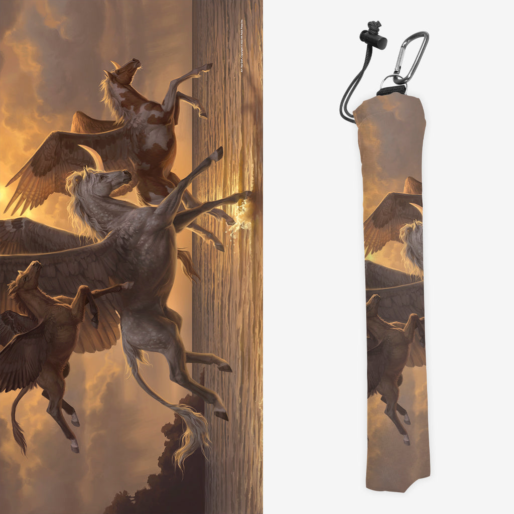 Keep your playmat in pristine condition wherever you go with one of our handcrafted playmat bags. This playmat bag is specifically designed to protect your playmat and can hold two standard sized mats at the same time (in case you need a backup or your friend forgets theirs). Each bag is made in-house and features a water-resistant coating along with a drawstring and carabiner clip for secure carrying. So you can take your game anywhere and in any weather.