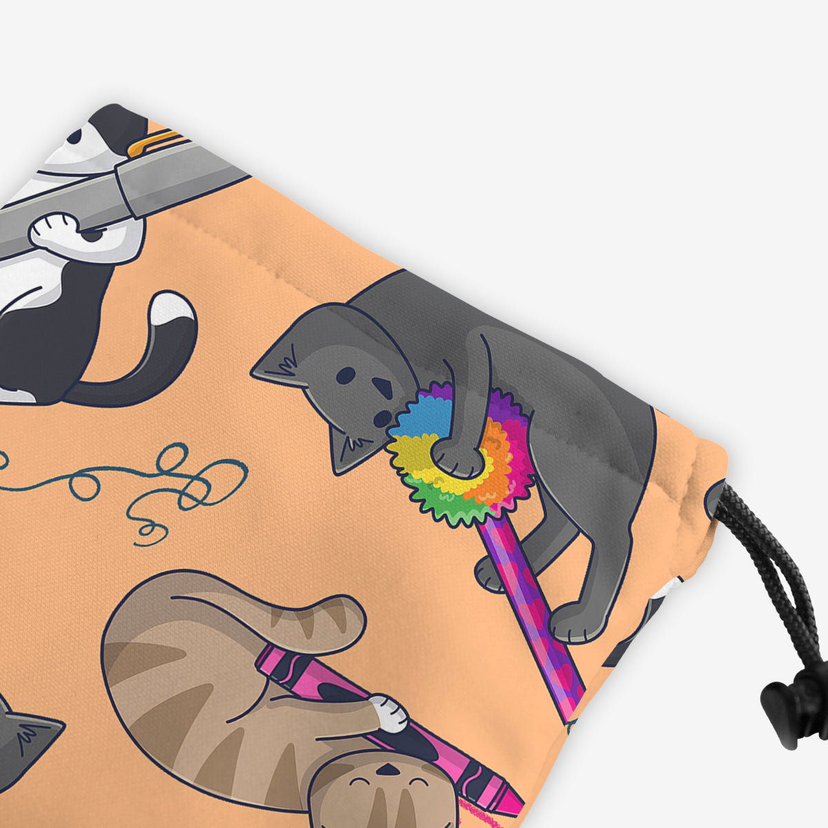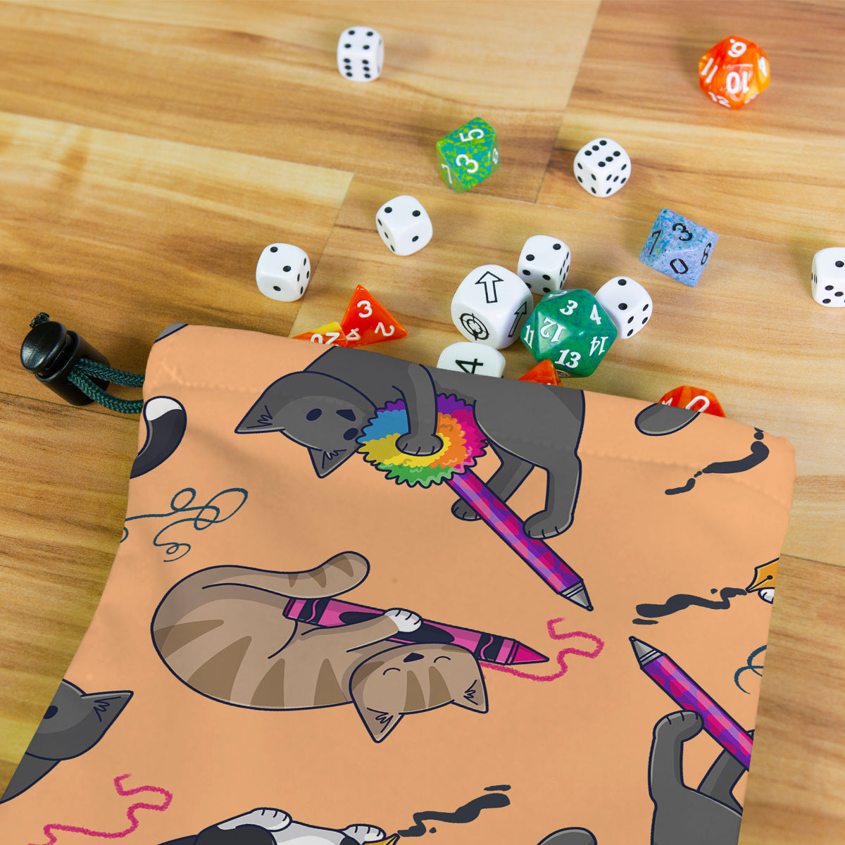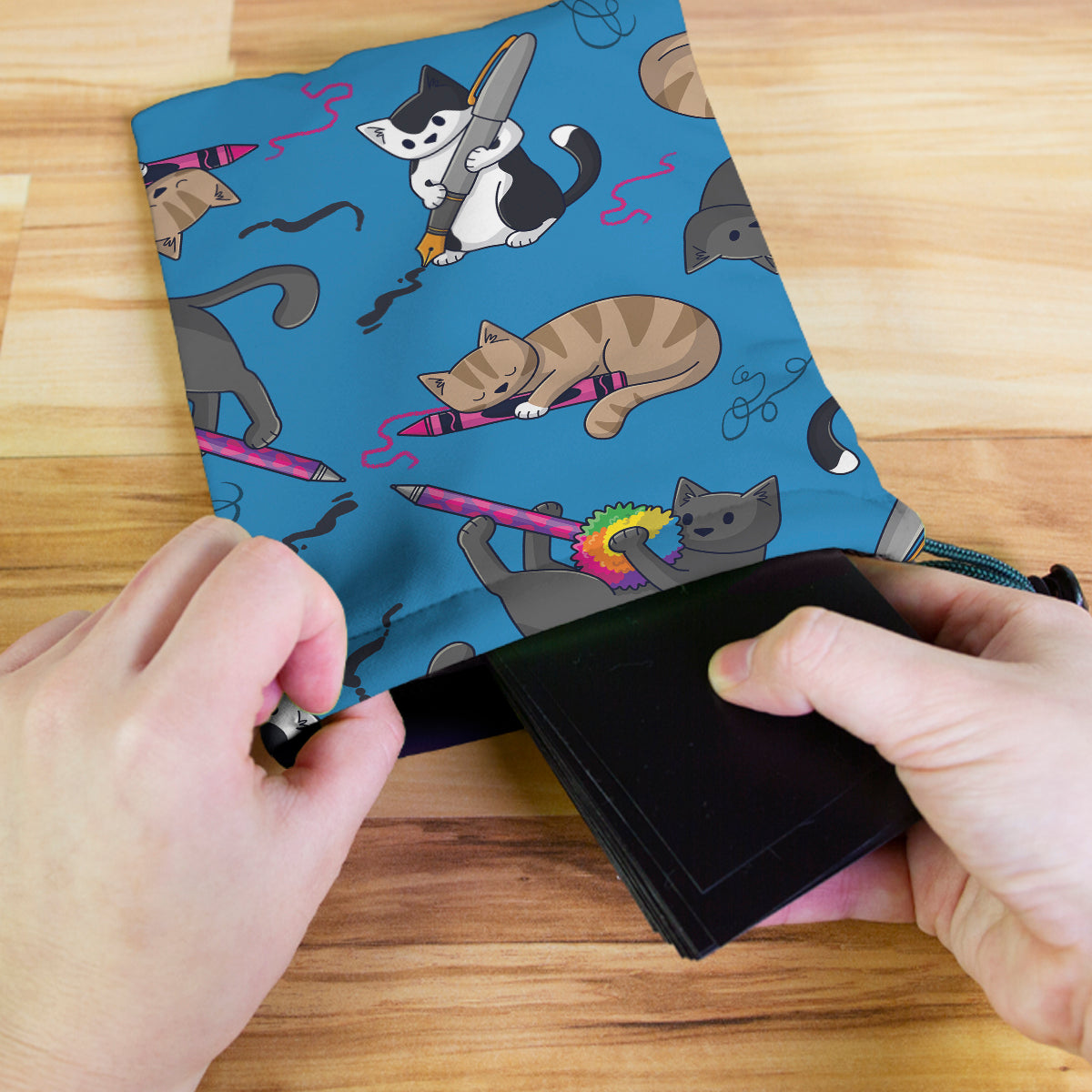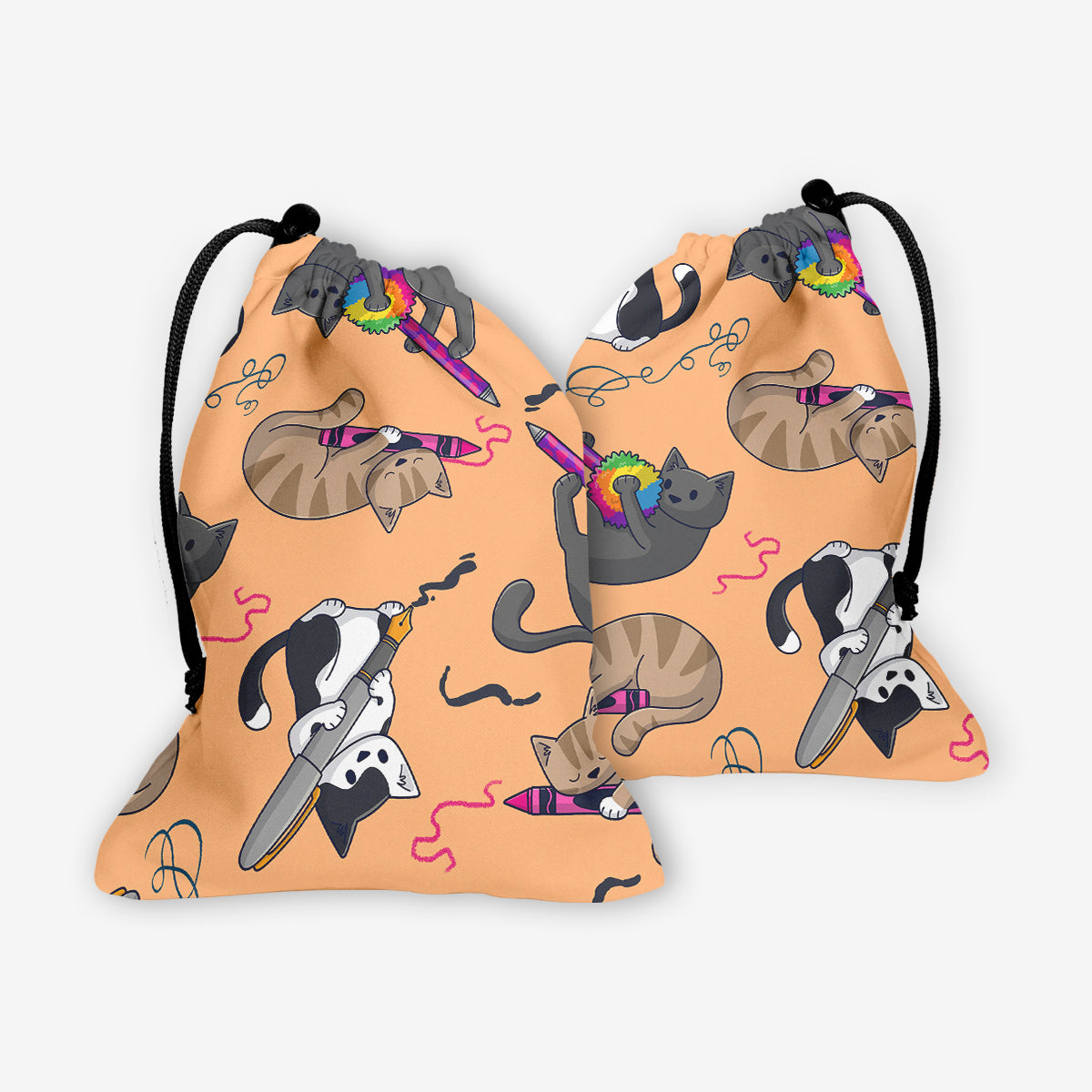 Doodle CatsAlways gaming on the go? Carry everything you need and more using our specially crafted dice bag. But this bag is designed to hold more than just dice. We make it so you can carry other essential accessories and gear with your dice, including deck boxes, life counters, extra sleeves, and pens. Quality is just as important as quantity, which is why our dice bags are crafted using premium material as well. Featuring a soft inner lining and microfiber on the inside and vibrant pre-designed artwork on the outside, our dice bag has an amazing look and feel to it!