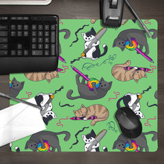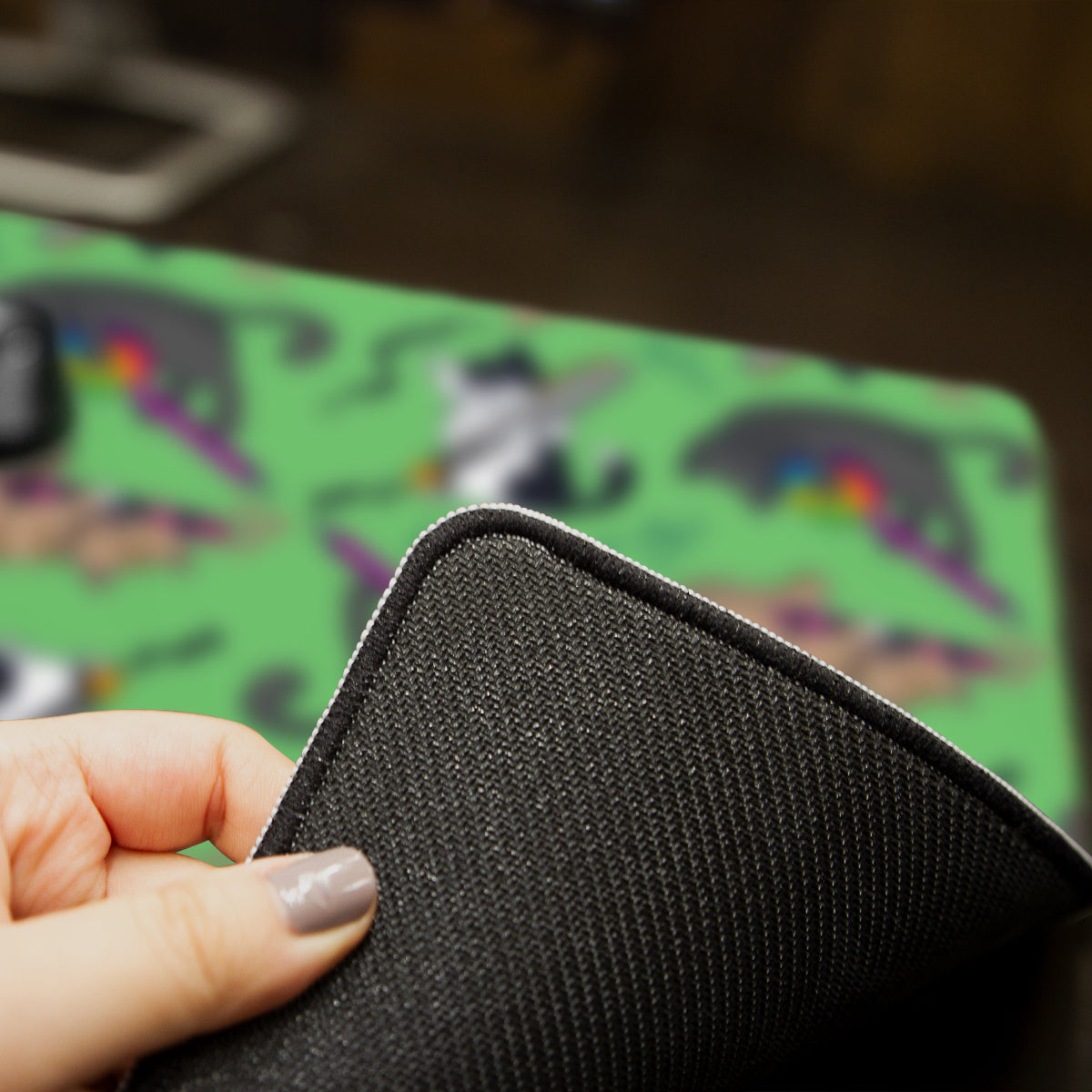 Need a new mousepad that features quality craftsmanship and creativity? Then you’ve definitely come to the right place. Our mousepads are made in-house with premium materials and unique artwork that give your battlestation the supreme look and feel that it deserves. The top is made from sleek polyester, which enables faster, more precise mouse movements. This enhanced speed and precision come in handy whether you’re working or gaming. On the bottom, there’s a strong anti-slip rubber backing that holds a nice, tight grip on your desk while you’re doing your thing. The action and traction this pad provides give you a better overall experience in completing daily tasks, deadlines, and missions of all kinds. And because we’ve added more sizing options to it, you no longer have to worry about running out of room at the worst moments either. The sizes are Classic, Large, and XL. The Classic mousepad has unstitched edges. However, the Large mousepad does include stitched edging, while the XL mousepad has both a stitched or unstitched edging option available. The stitched edging is intended to keep fraying at bay every time you play. You can see the approximate measurements of all those sizes in the details below. We think you’ll be impressed…if you aren’t already!