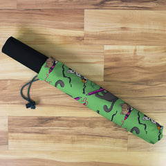 Keep your playmat in pristine condition wherever you go with one of our handcrafted playmat bags. This playmat bag is specifically designed to protect your playmat and can hold two standard sized mats at the same time (in case you need a backup or your friend forgets theirs). Each bag is made in-house and features a water-resistant coating along with a drawstring and carabiner clip for secure carrying. So you can take your game anywhere and in any weather.