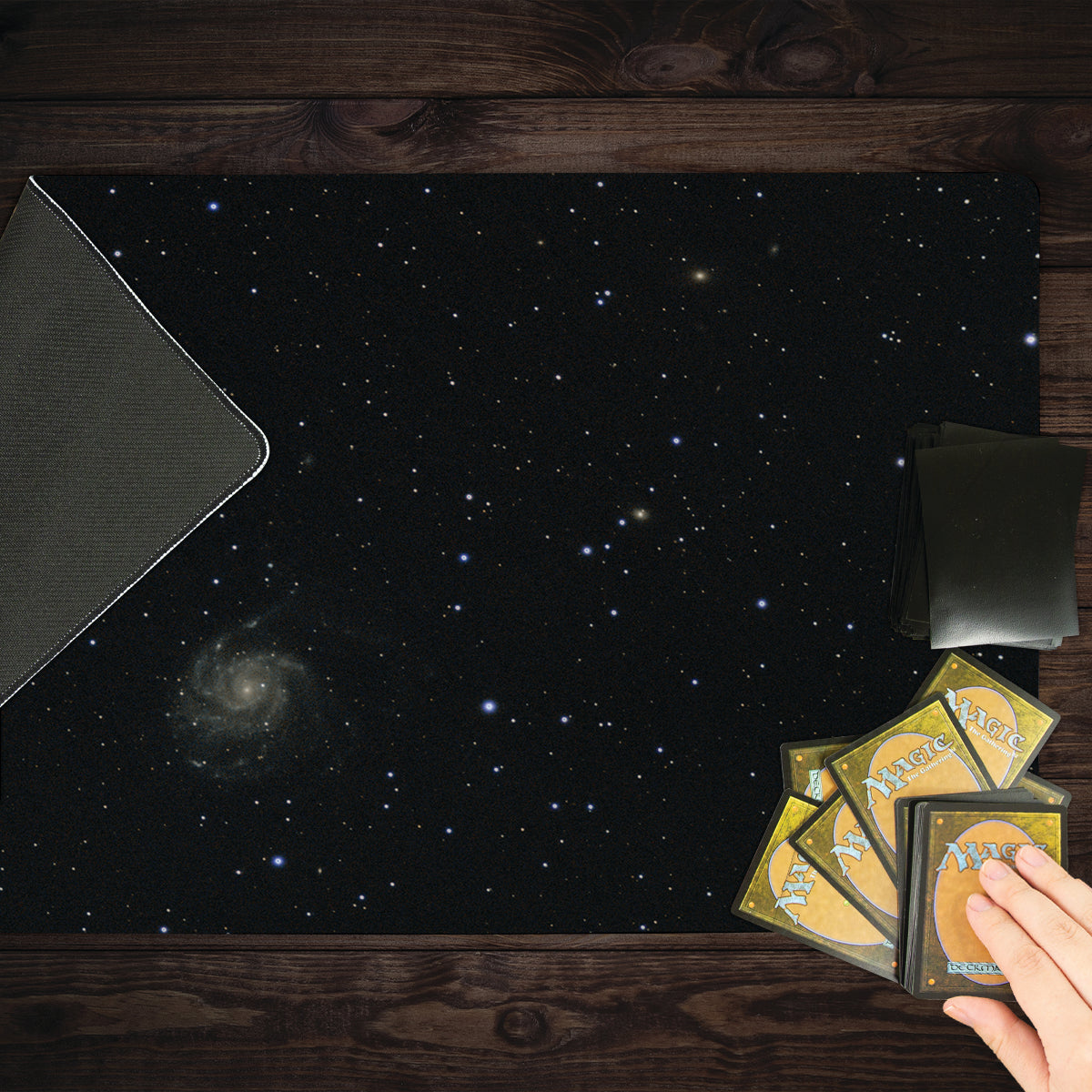 Standard Playmat measures at 24” x 14” inches and is 1/16 of an inch thick. It’s made with a smooth cloth top and strong rubber backing.