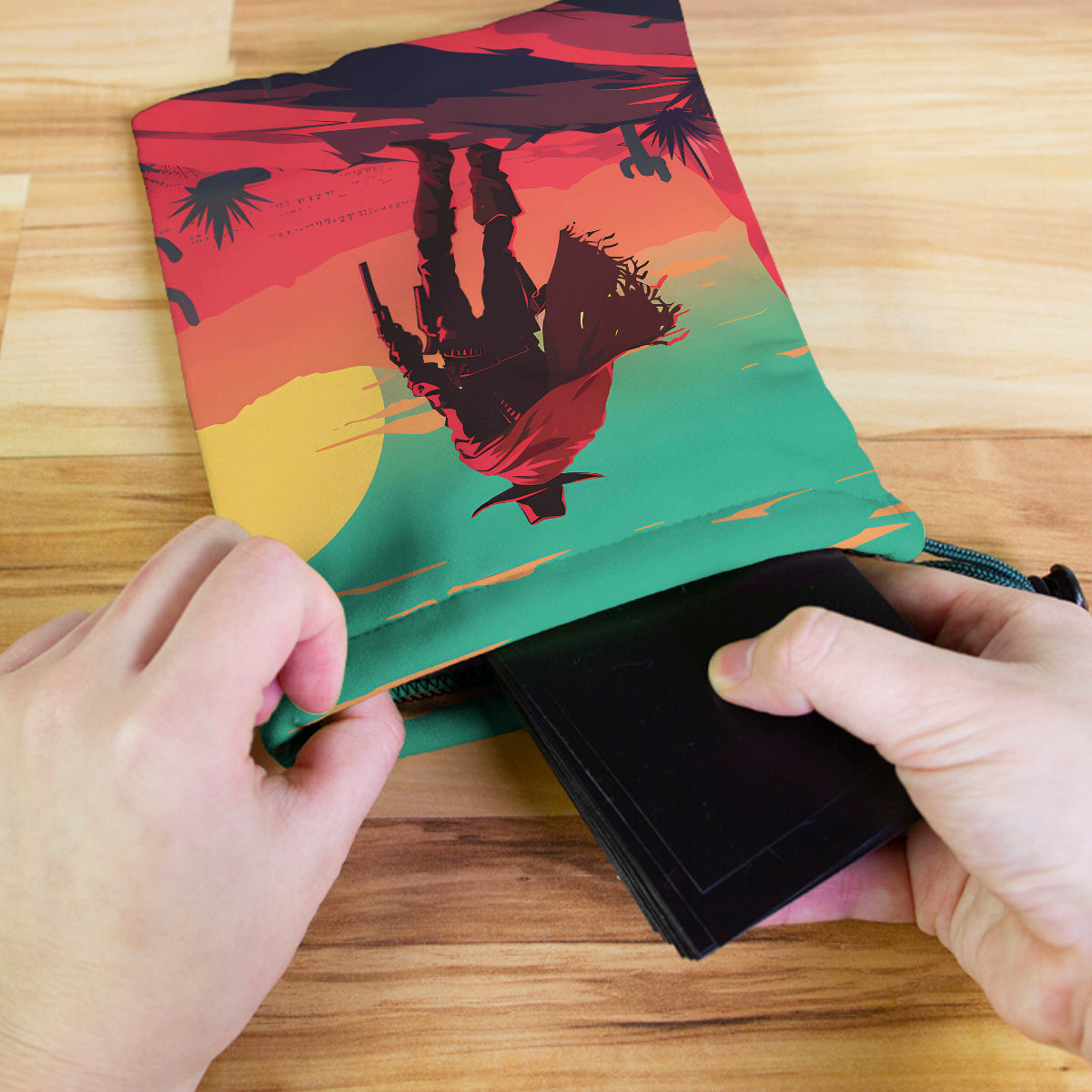 The CuriographerAlways gaming on the go? Carry everything you need and more using our specially crafted dice bag. But this bag is designed to hold more than just dice. We make it so you can carry other essential accessories and gear with your dice, including deck boxes, life counters, extra sleeves, and pens. Quality is just as important as quantity, which is why our dice bags are crafted using premium material as well. Featuring a soft inner lining and microfiber on the inside and vibrant pre-designed artwork on the outside, our dice bag has an amazing look and feel to it!