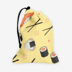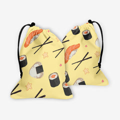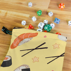 Rakkou ArtGive your game a fresh, exotic taste with this Pixel Sushi dice bag design from Rakkou Art! We make all of our dice bags in-house and give it a soft microfiber and smooth inner lining. Together, these materials create a rich-looking bag that feels great and keeps your dice looking like new. And because we make this bag with such a spacious design, it can carry/store all types of precious goods. These goods can include dice, deck boxes, life counters sleeves, tokens, extra pens and much more!