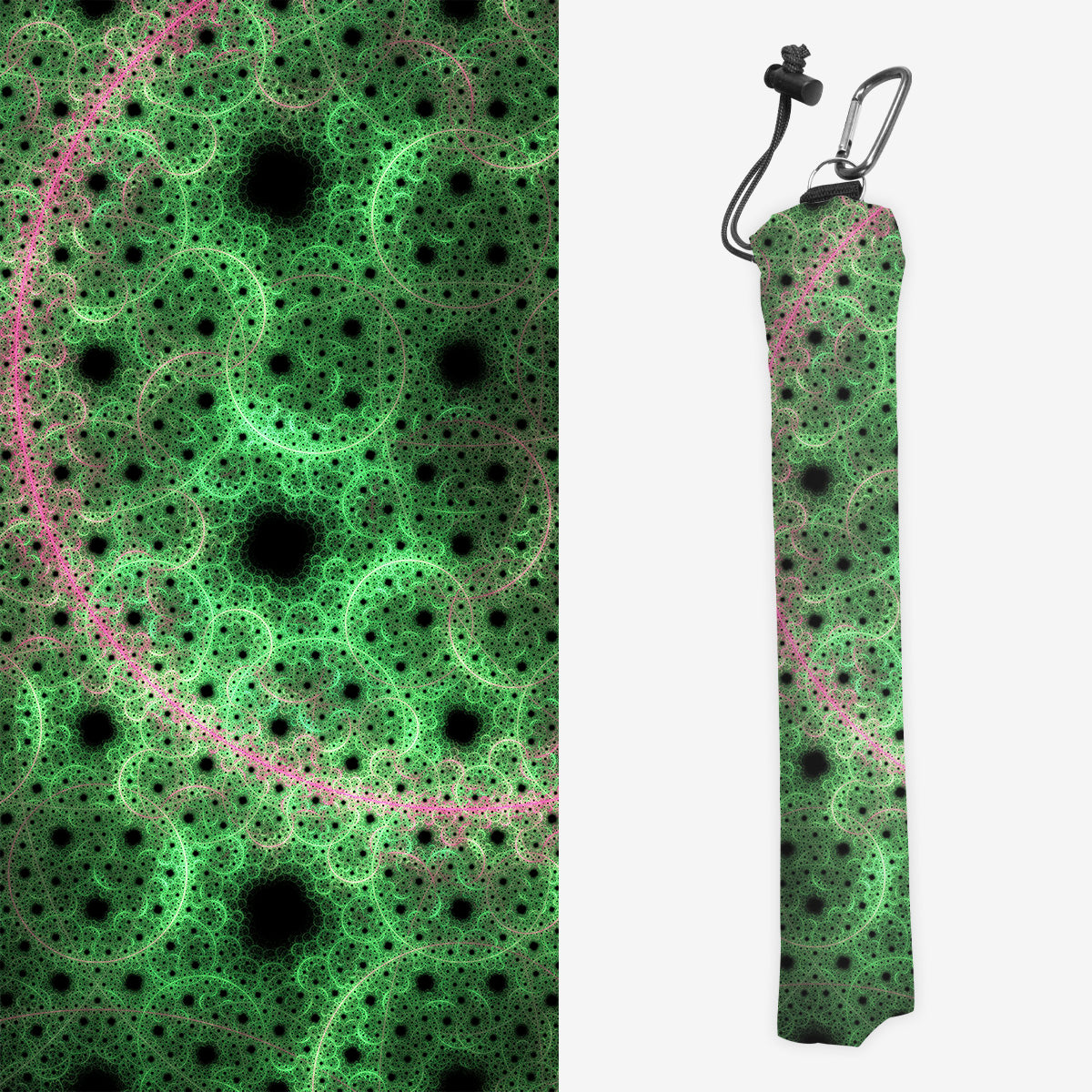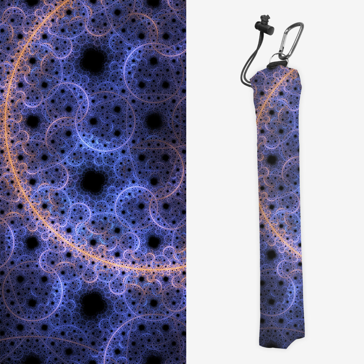 Playmat Bags are specifically designed to hold your mats in style. They are large enough to carry up to two mats. They are coated to be water resistant and include a strap with carabiner for carrying on your backpack. Our bags are hand made in house, and to order. A design that is vertical or patterned would be best for this type of product.