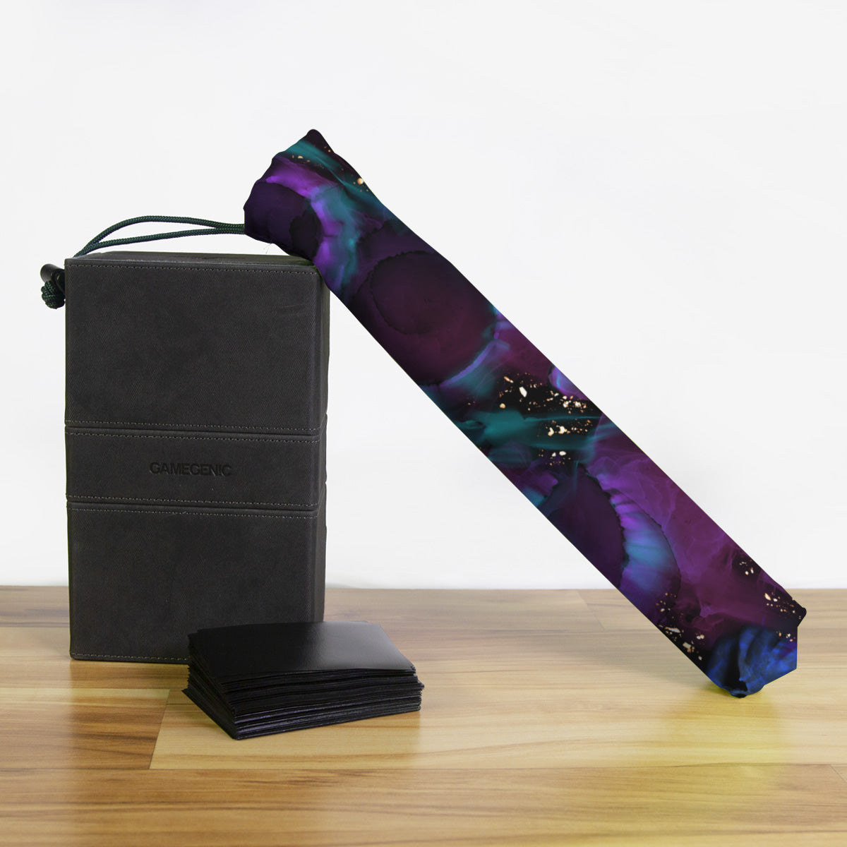 Keep your playmat in pristine condition wherever you go with one of our handcrafted playmat bags. This playmat bag is specifically designed to protect your playmat and can hold two standard sized mats at the same time (in case you need a backup or your friend forgets theirs). Each bag is made in-house and features a water-resistant coating along with a drawstring and carabiner clip for secure carrying. So you can take your game anywhere and in any weather.