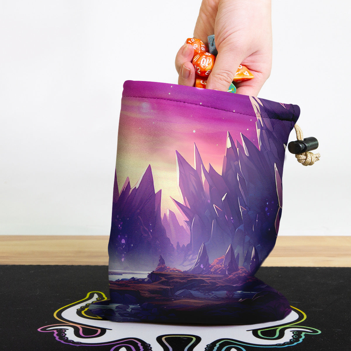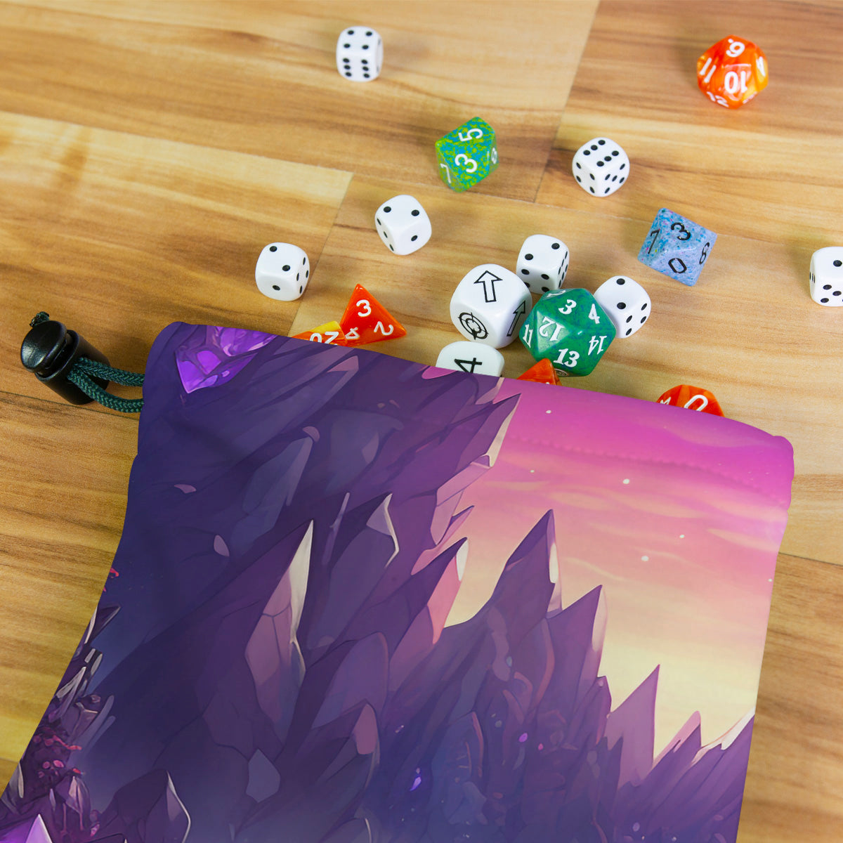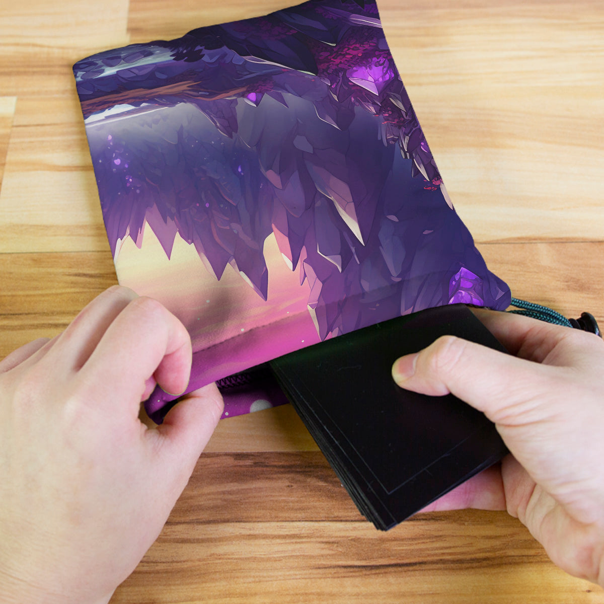Natural Nexus DesignsAlways gaming on the go? Carry everything you need and more using our specially crafted dice bag. But this bag is designed to hold more than just dice. We make it so you can carry other essential accessories and gear with your dice, including deck boxes, life counters, extra sleeves, and pens. Quality is just as important as quantity, which is why our dice bags are crafted using premium material as well. Featuring a soft inner lining and microfiber on the inside and vibrant pre-designed artwork on the outside, our dice bag has an amazing look and feel to it!