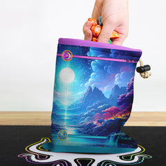 Always gaming on the go? Carry everything you need and more using our specially crafted dice bag. But this bag is designed to hold more than just dice. We make it so you can carry other essential accessories and gear with your dice, including deck boxes, life counters, extra sleeves, and pens. Quality is just as important as quantity, which is why our dice bags are crafted using premium material as well. Featuring a soft inner lining and microfiber on the inside and vibrant pre-designed artwork on the outside, our dice bag has an amazing look and feel to it!