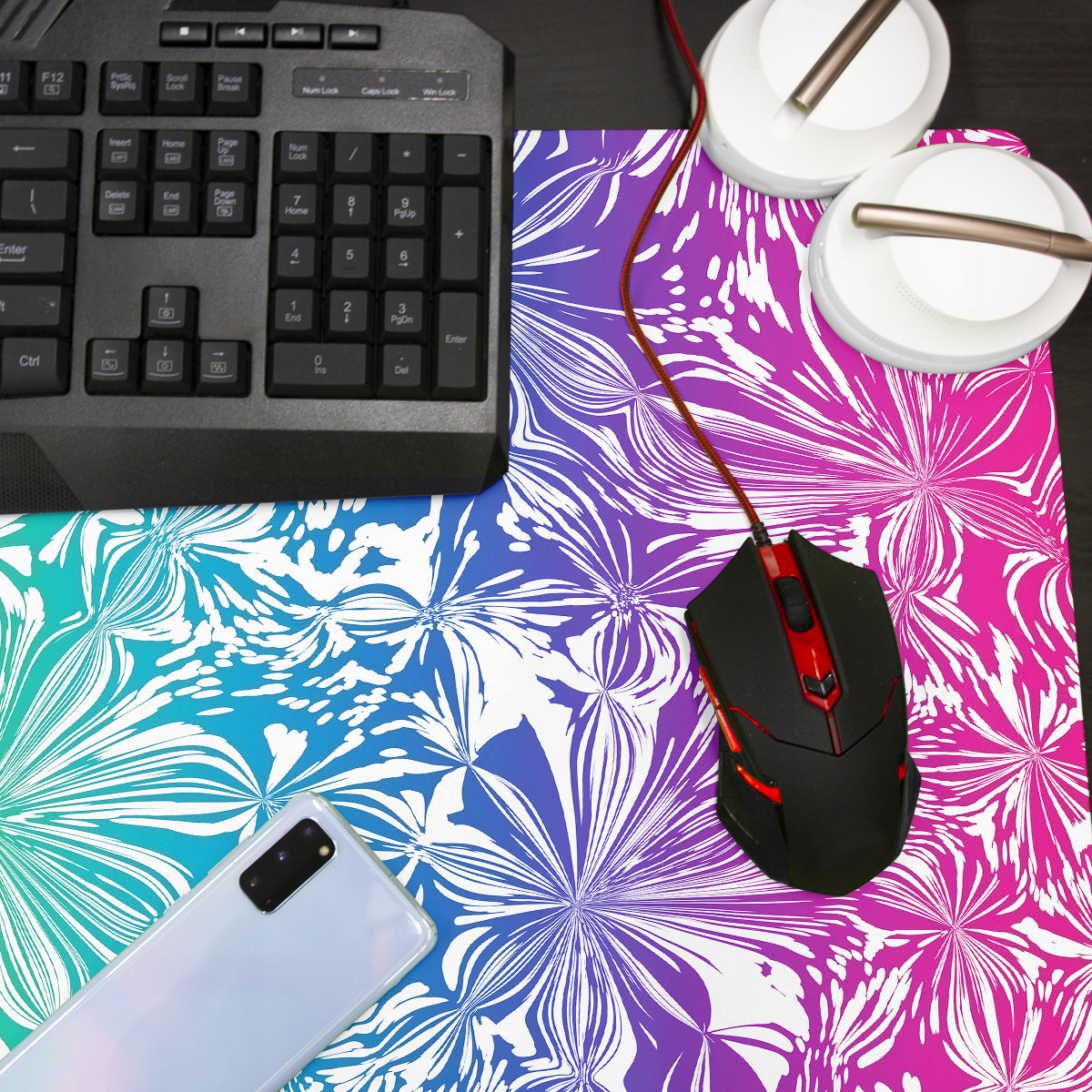 Need something new that can protect your desk and give it a hint of personality at the same time? Freshen things up a bit with a piece that’s unique and useful, like our 24” x 14” Thin Desk Mats. Just like the other mats that we make, this one is meant to give you the best work/play experience possible. And the fact that you can order it with a stunning design from an independent makes it even more special. The mat itself is crafted with premium materials that allow you to play and perform at your peak and keep your desk protected. The top features a smooth polyester that makes moving your mouse (or coffee cup) easier than ever. It also has a grippy rubber backing on the bottom, which ensures that it will remain still during the most hectic last-minute reports. As far as the artwork is concerned, all artists on our site receive a commission for any sales of their work. So every time you buy a pre-designed product from our site, you're helping to support our amazing community of independent artists!