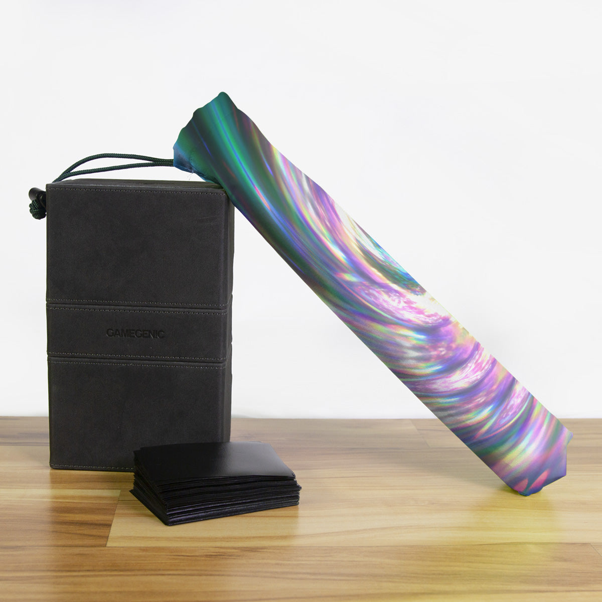 Keep your playmat in pristine condition wherever you go with one of our handcrafted playmat bags. This playmat bag is specifically designed to protect your playmat and can hold two standard sized mats at the same time (in case you need a backup or your friend forgets theirs). Each bag is made in-house and features a water-resistant coating along with a drawstring and carabiner clip for secure carrying. So you can take your game anywhere and in any weather.