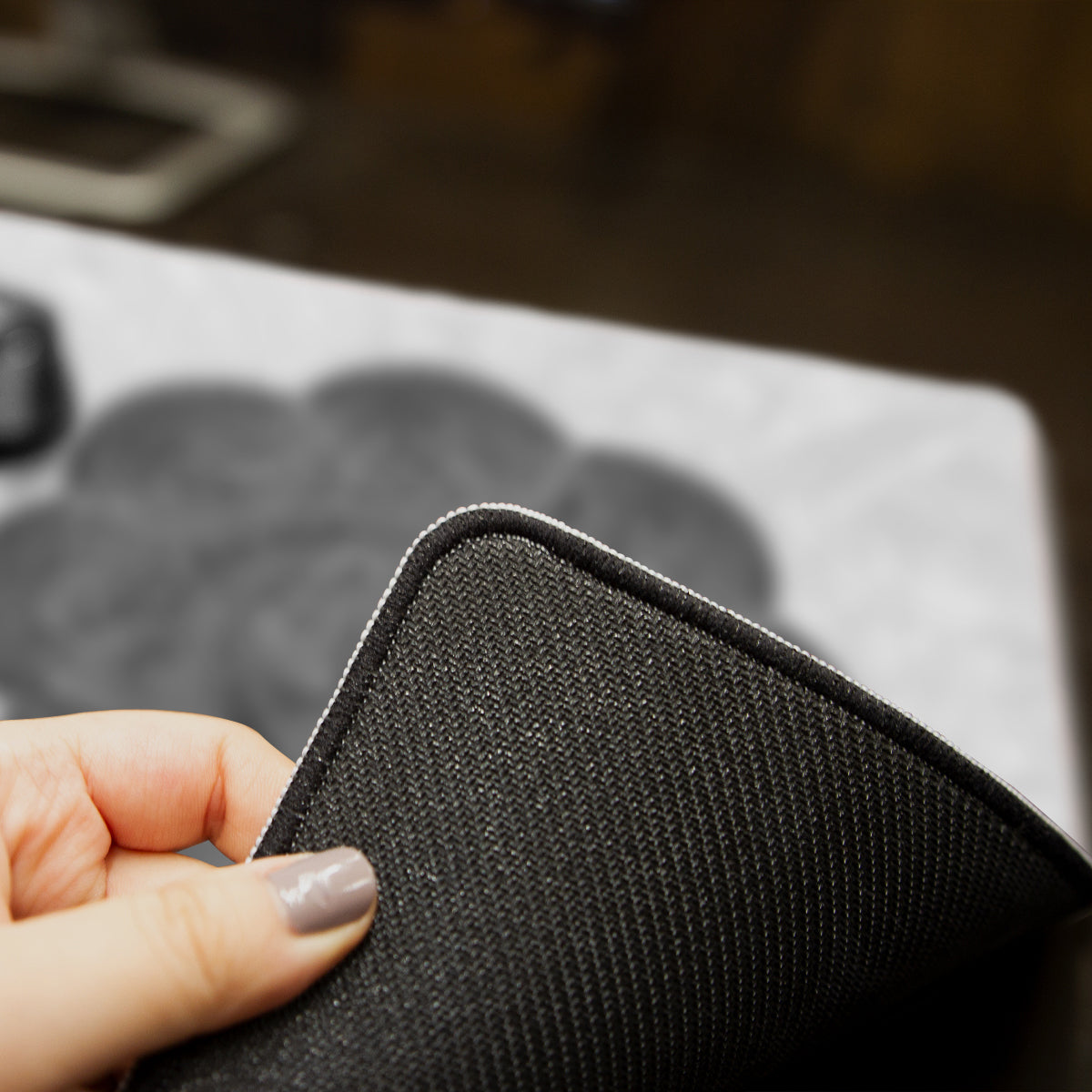 Need a new mousepad that features quality craftsmanship and creativity? Then you’ve definitely come to the right place. Our mousepads are made in-house with premium materials and unique artwork that give your battlestation the supreme look and feel that it deserves. The top is made from sleek polyester, which enables faster, more precise mouse movements. This enhanced speed and precision come in handy whether you’re working or gaming. On the bottom, there’s a strong anti-slip rubber backing that holds a nice, tight grip on your desk while you’re doing your thing. The action and traction this pad provides give you a better overall experience in completing daily tasks, deadlines, and missions of all kinds. And because we’ve added more sizing options to it, you no longer have to worry about running out of room at the worst moments either. The sizes are Classic, Large, and XL. The Classic mousepad has unstitched edges. However, the Large mousepad does include stitched edging, while the XL mousepad has both a stitched or unstitched edging option available. The stitched edging is intended to keep fraying at bay every time you play. You can see the approximate measurements of all those sizes in the details below. We think you’ll be impressed…if you aren’t already!