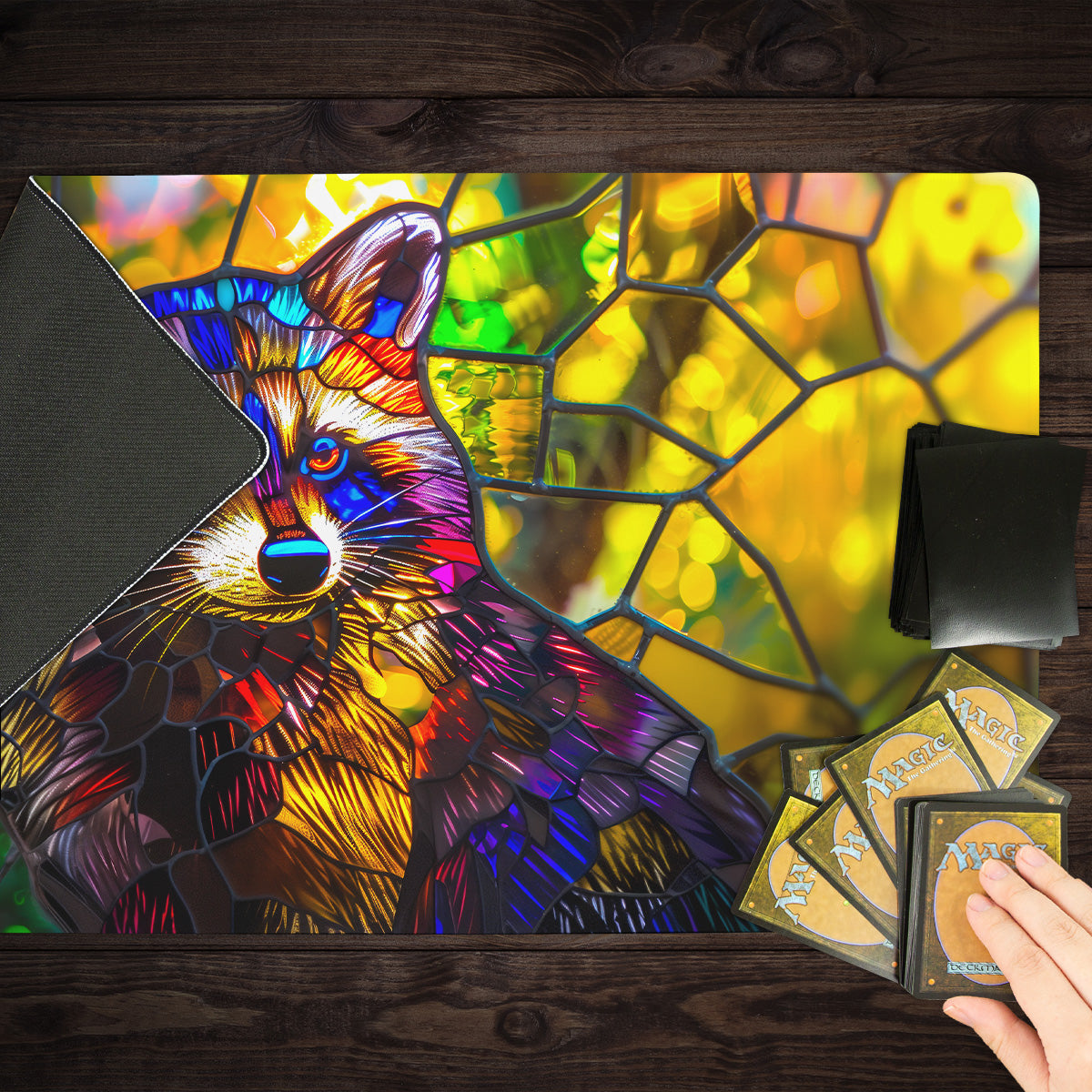 Rainbow Raccoon Stained Glass Playmat