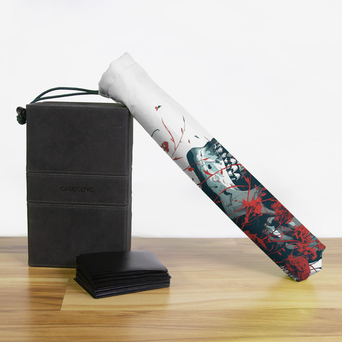 Keep your playmat in pristine condition wherever you go with one of our handcrafted playmat bags. This playmat bag is specifically designed to protect your playmat and can hold two standard sized mats at the same time (in case you need a backup or your friend forgets theirs). Each bag is made in-house and features a water-resistant coating along with a drawstring and carabiner clip for secure carrying. So you can take your game anywhere and in any weather.