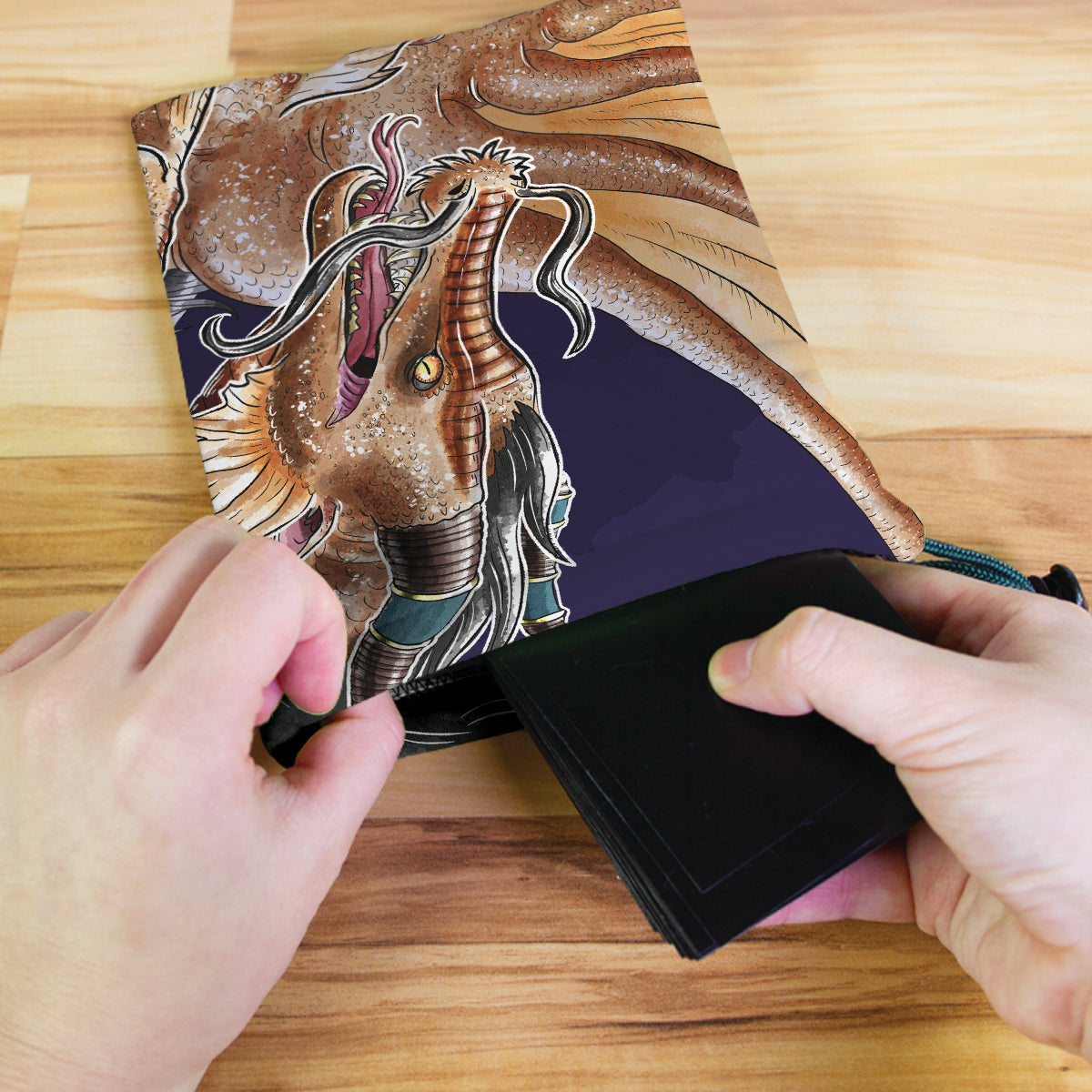 Diane RamicAlways gaming on the go? Carry everything you need and more using our specially crafted dice bag. But this bag is designed to hold more than just dice. We make it so you can carry other essential accessories and gear with your dice, including deck boxes, life counters, extra sleeves, and pens. Quality is just as important as quantity, which is why our dice bags are crafted using premium material as well. Featuring a soft inner lining and microfiber on the inside and vibrant pre-designed artwork on the outside, our dice bag has an amazing look and feel to it!