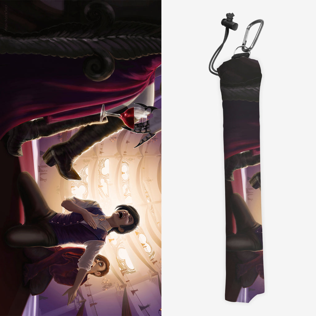 Playmat Bags are specifically designed to hold your mats in style. They are large enough to carry up to two mats. They are coated to be water resistant and include a strap with carabiner for carrying on your backpack. Our bags are hand made in house, and to order. A design that is vertical or patterned would be best for this type of product.
