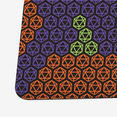 Oversized Playmat measures at 28” x 14” inches and is 1/16 of an inch thick. It’s made with a smooth cloth top and strong rubber backing.
