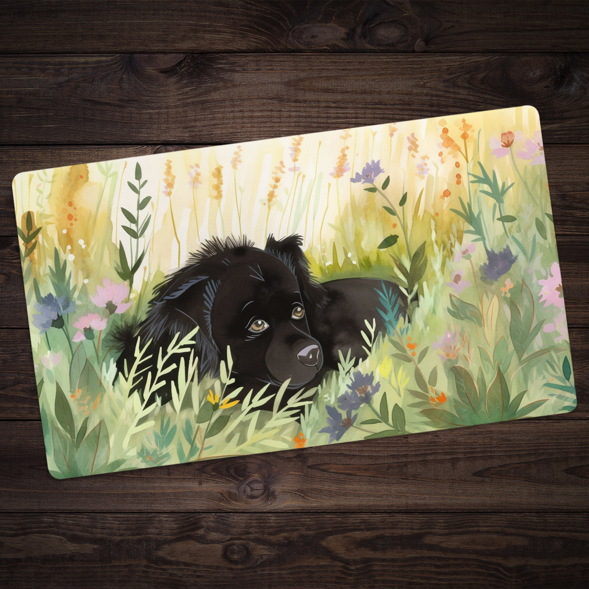 Standard Playmat measures at 24” x 14” inches and is 1/16 of an inch thick. It’s made with a smooth cloth top and strong rubber backing.