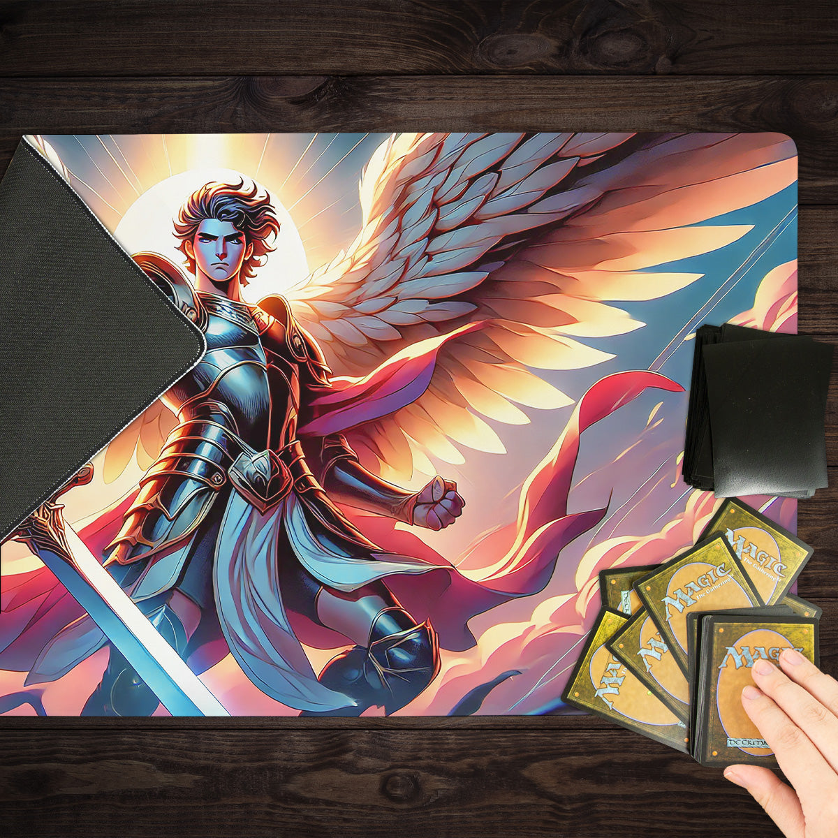 Standard Playmat measures at 24” x 14” inches and is 1/16 of an inch thick. It’s made with a smooth cloth top and strong rubber backing.