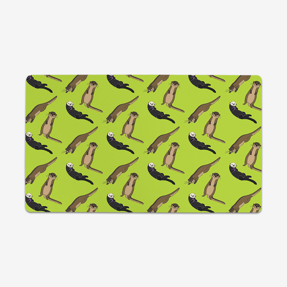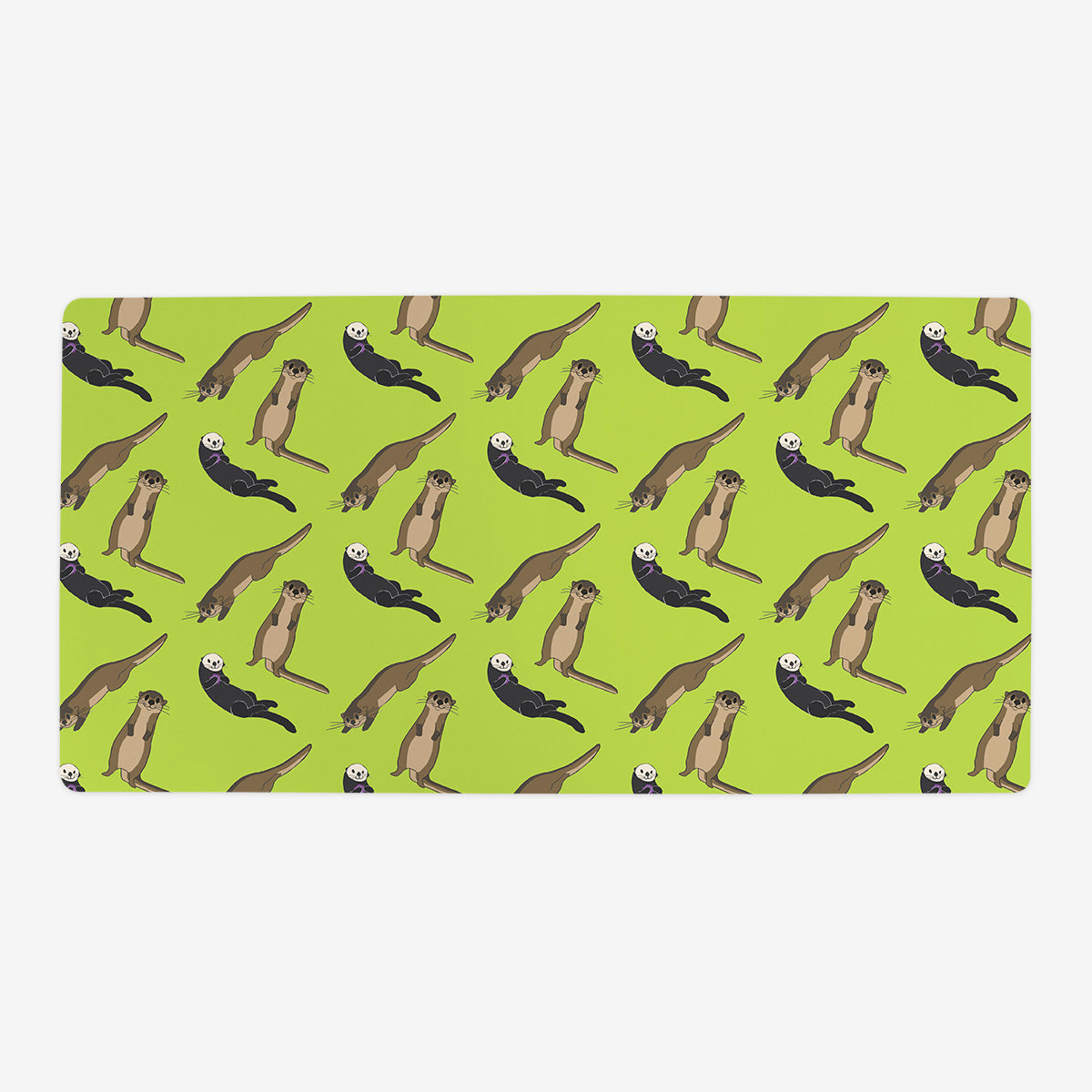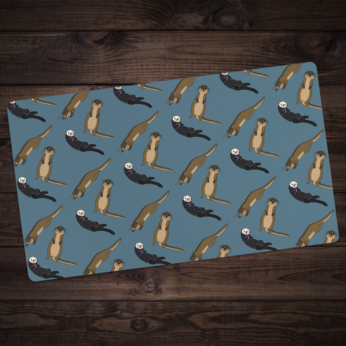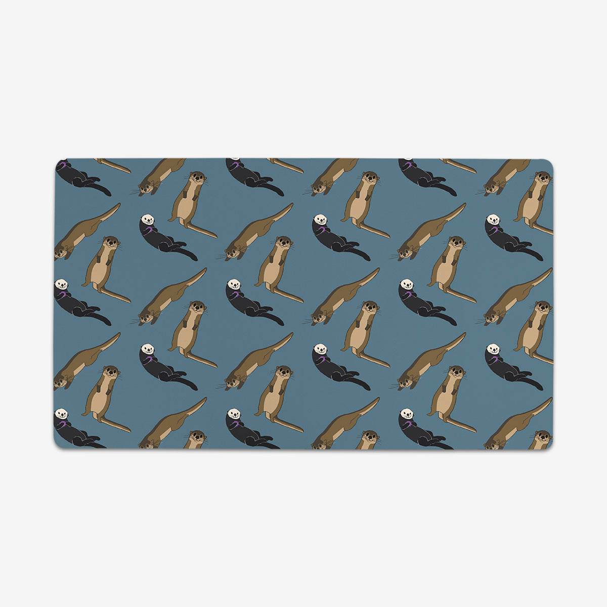 Oversized Playmat measures at 28” x 14” inches and is 1/16 of an inch thick. It’s made with a smooth cloth top and strong rubber backing.