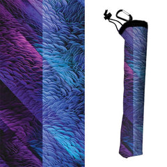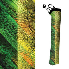 Playmat Bags are specifically designed to hold your mats in style. They are large enough to carry up to two mats. They are coated to be water resistant and include a strap with carabiner for carrying on your backpack. Our bags are hand made in house, and to order. A design that is vertical or patterned would be best for this type of product.