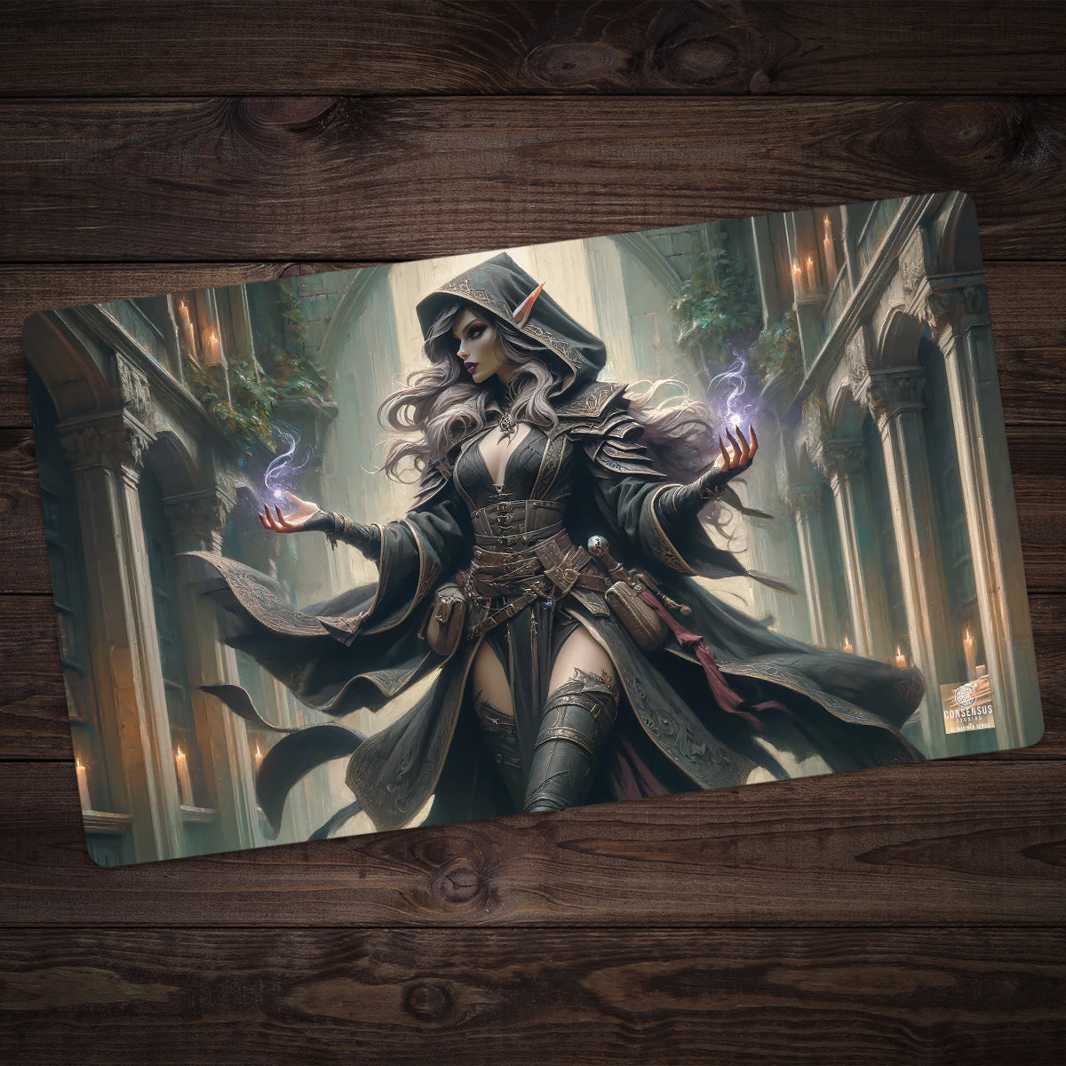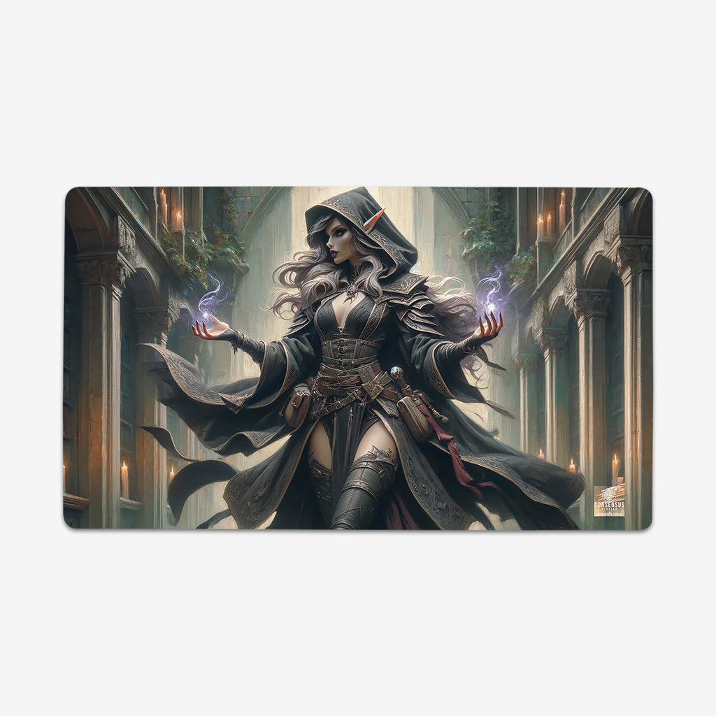 Standard Playmat measures at 24” x 14” inches and is 1/16 of an inch thick. It’s made with a smooth cloth top and strong rubber backing.