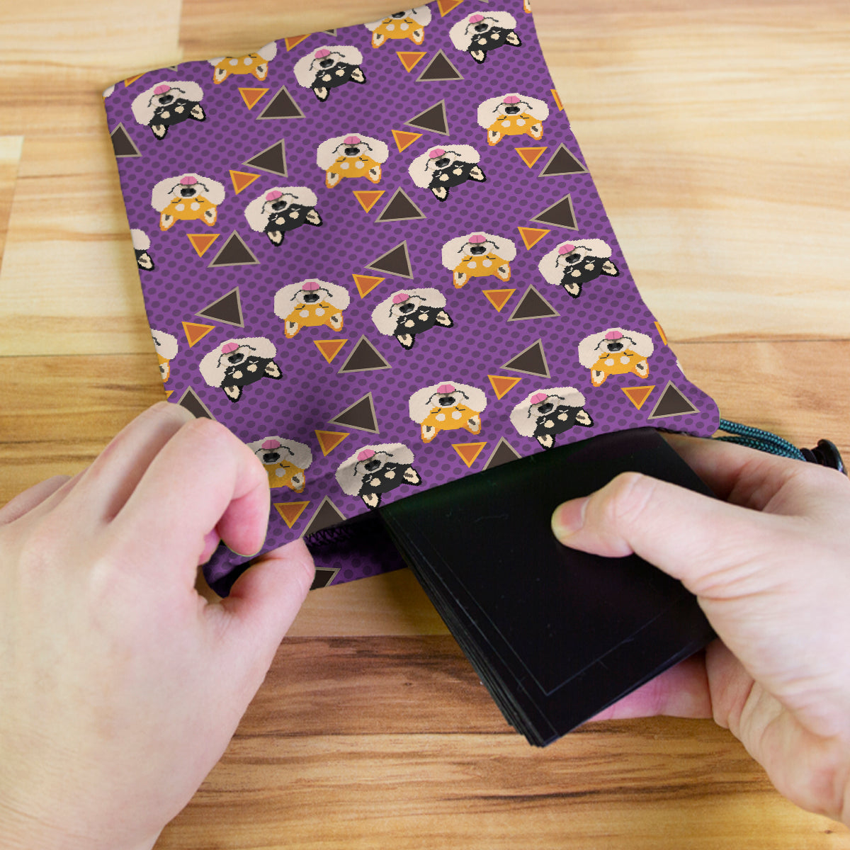 Always gaming on the go? Carry everything you need and more using our specially crafted dice bag. But this bag is designed to hold more than just dice. We make it so you can carry other essential accessories and gear with your dice, including deck boxes, life counters, extra sleeves, and pens. Quality is just as important as quantity, which is why our dice bags are crafted using premium material as well. Featuring a soft inner lining and microfiber on the inside and vibrant pre-designed artwork on the outside, our dice bag has an amazing look and feel to it!