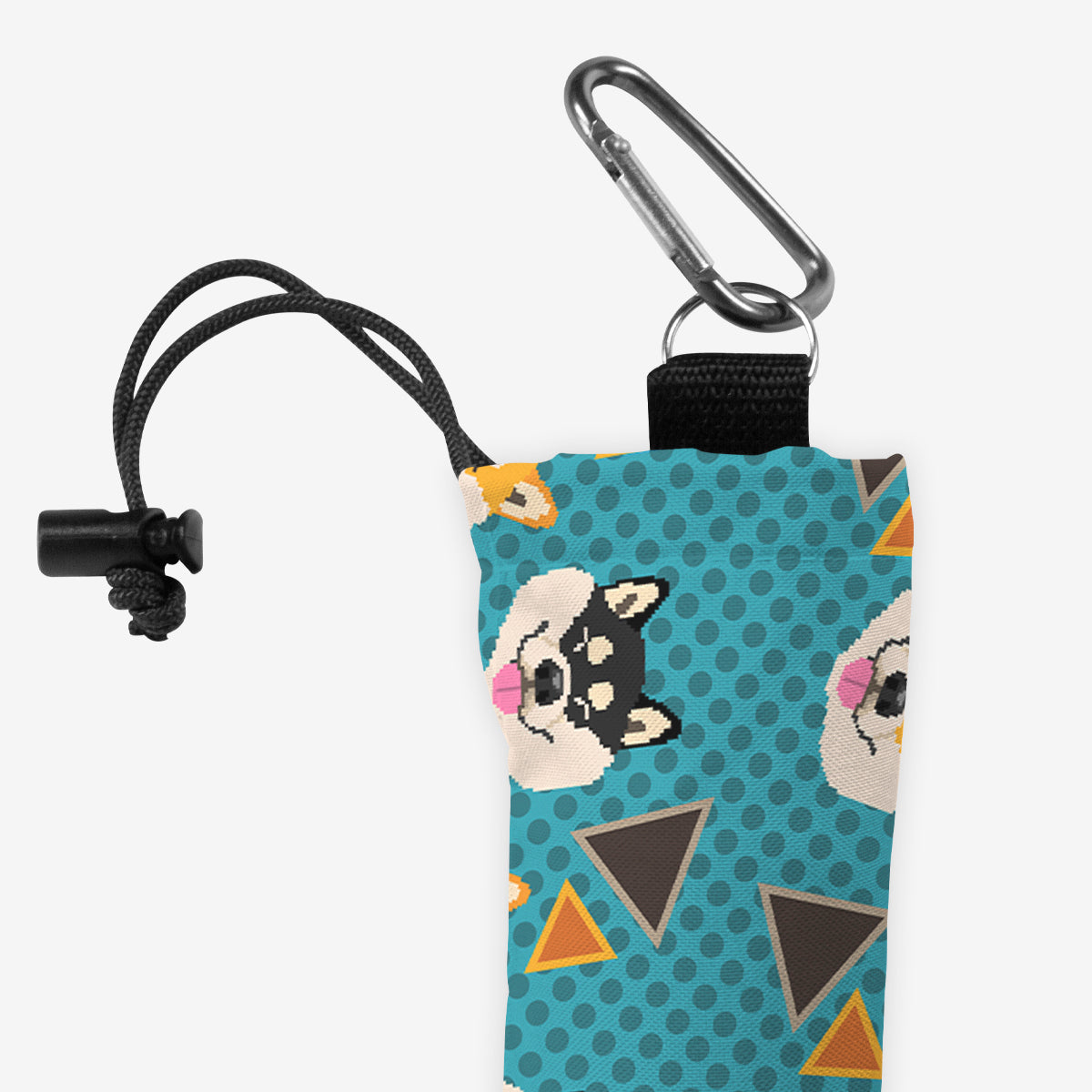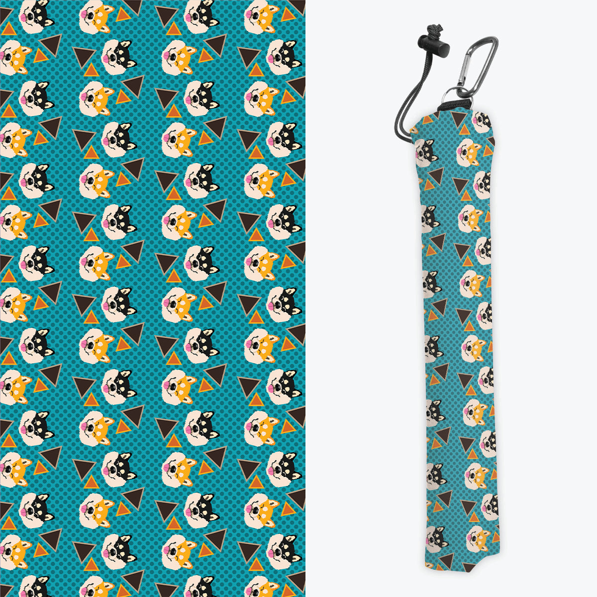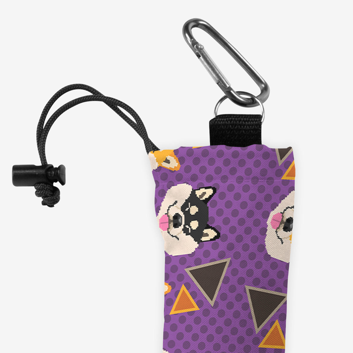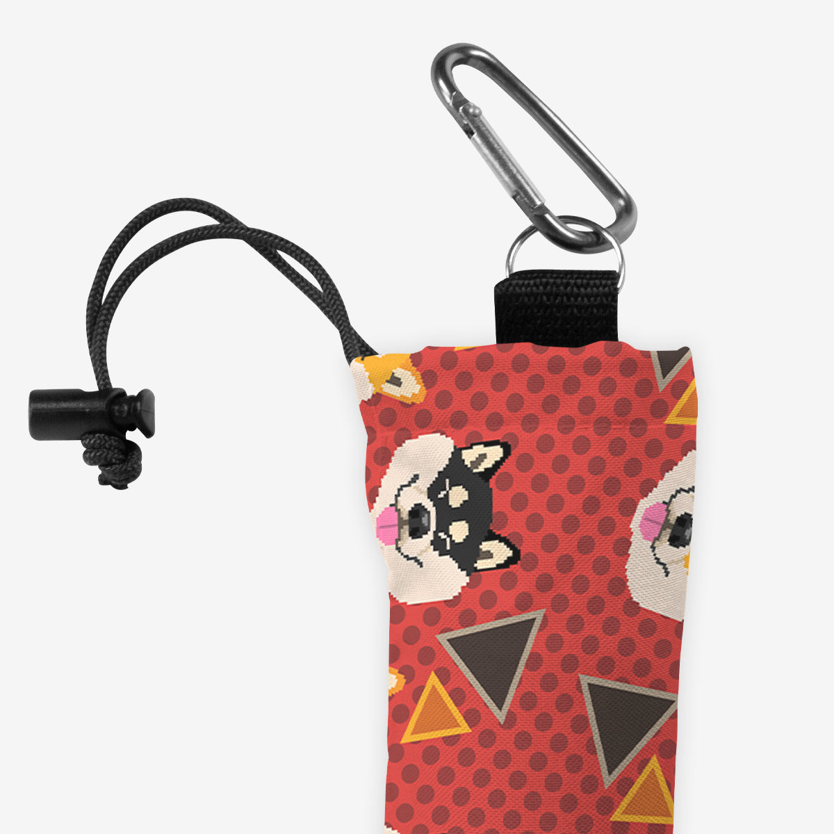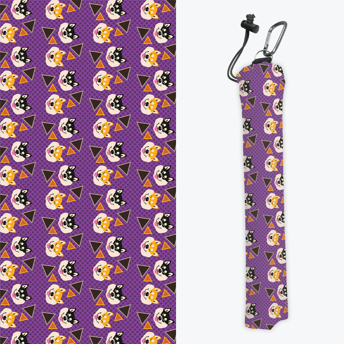 Playmat Bags are specifically designed to hold your mats in style. They are large enough to carry up to two mats. They are coated to be water resistant and include a strap with carabiner for carrying on your backpack. Our bags are hand made in house, and to order. A design that is vertical or patterned would be best for this type of product.