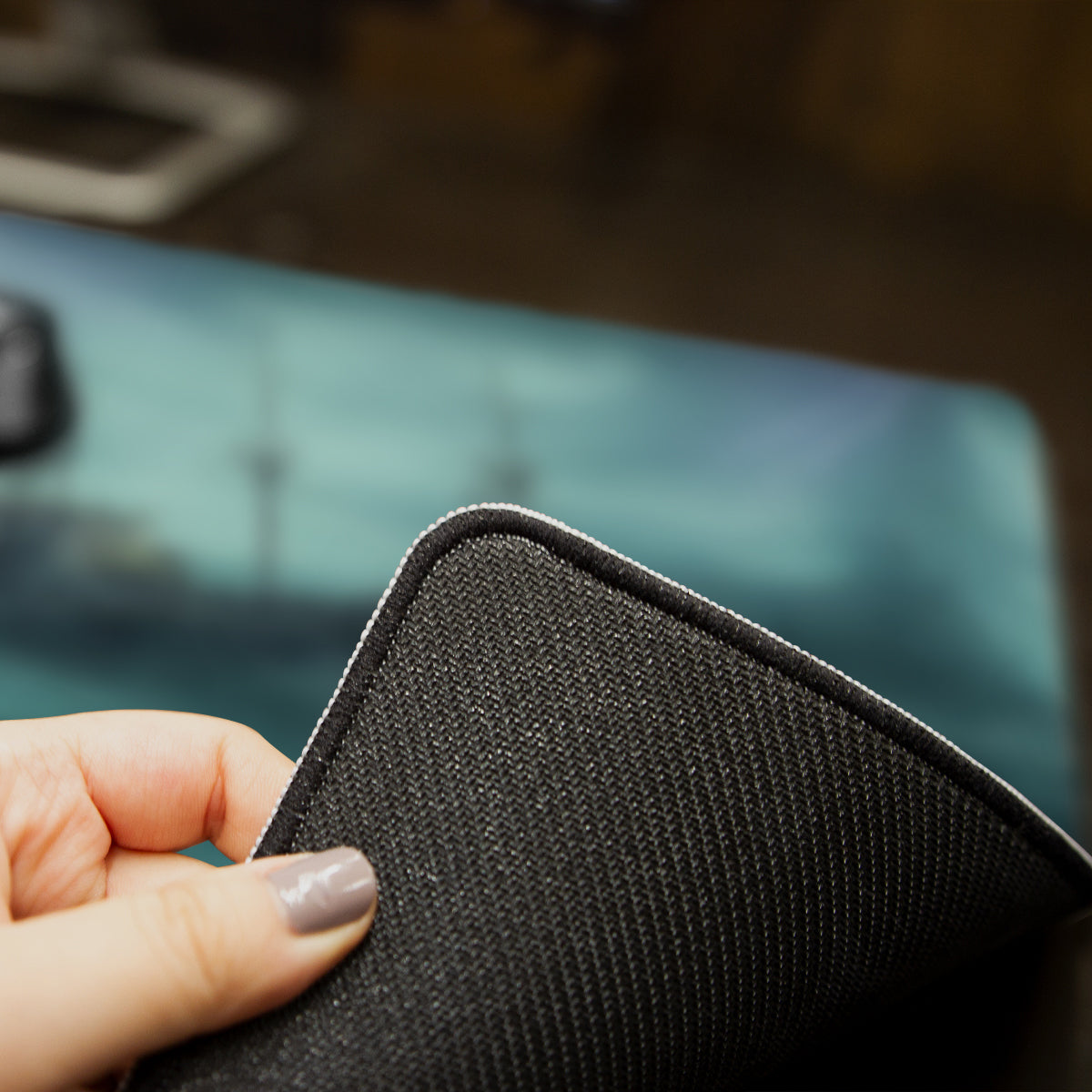 Need a new mousepad that features quality craftsmanship and creativity? Then you’ve definitely come to the right place. Our mousepads are made in-house with premium materials and unique artwork that give your battlestation the supreme look and feel that it deserves. The top is made from sleek polyester, which enables faster, more precise mouse movements. This enhanced speed and precision come in handy whether you’re working or gaming. On the bottom, there’s a strong anti-slip rubber backing that holds a nice, tight grip on your desk while you’re doing your thing. The action and traction this pad provides give you a better overall experience in completing daily tasks, deadlines, and missions of all kinds. And because we’ve added more sizing options to it, you no longer have to worry about running out of room at the worst moments either. The sizes are Classic, Large, and XL. The Classic mousepad has unstitched edges. However, the Large mousepad does include stitched edging, while the XL mousepad has both a stitched or unstitched edging option available. You can see the approximate measurements of all those sizes in the details below. We think you’ll be impressed…if you aren’t already!