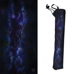 Playmat Bags are specifically designed to hold your mats in style. They are large enough to carry up to two mats. They are coated to be water resistant and include a strap with carabiner for carrying on your backpack. Our bags are hand made in house, and to order. A design that is vertical or patterned would be best for this type of product.