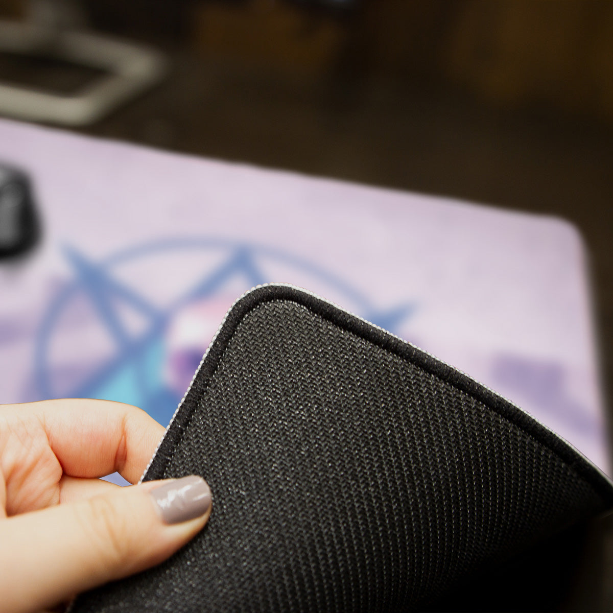 Need a new mousepad that features quality craftsmanship and creativity? Then you’ve definitely come to the right place. Our mousepads are made in-house with premium materials and unique artwork that give your battlestation the supreme look and feel that it deserves. The top is made from sleek polyester, which enables faster, more precise mouse movements. This enhanced speed and precision come in handy whether you’re working or gaming. On the bottom, there’s a strong anti-slip rubber backing that holds a nice, tight grip on your desk while you’re doing your thing. The action and traction this pad provides give you a better overall experience in completing daily tasks, deadlines, and missions of all kinds. And because we’ve added more sizing options to it, you no longer have to worry about running out of room at the worst moments either. The sizes are Classic, Large, and XL. The Classic mousepad has unstitched edges. However, the Large mousepad does include stitched edging, while the XL mousepad has both a stitched or unstitched edging option available. You can see the approximate measurements of all those sizes in the details below. We think you’ll be impressed…if you aren’t already!