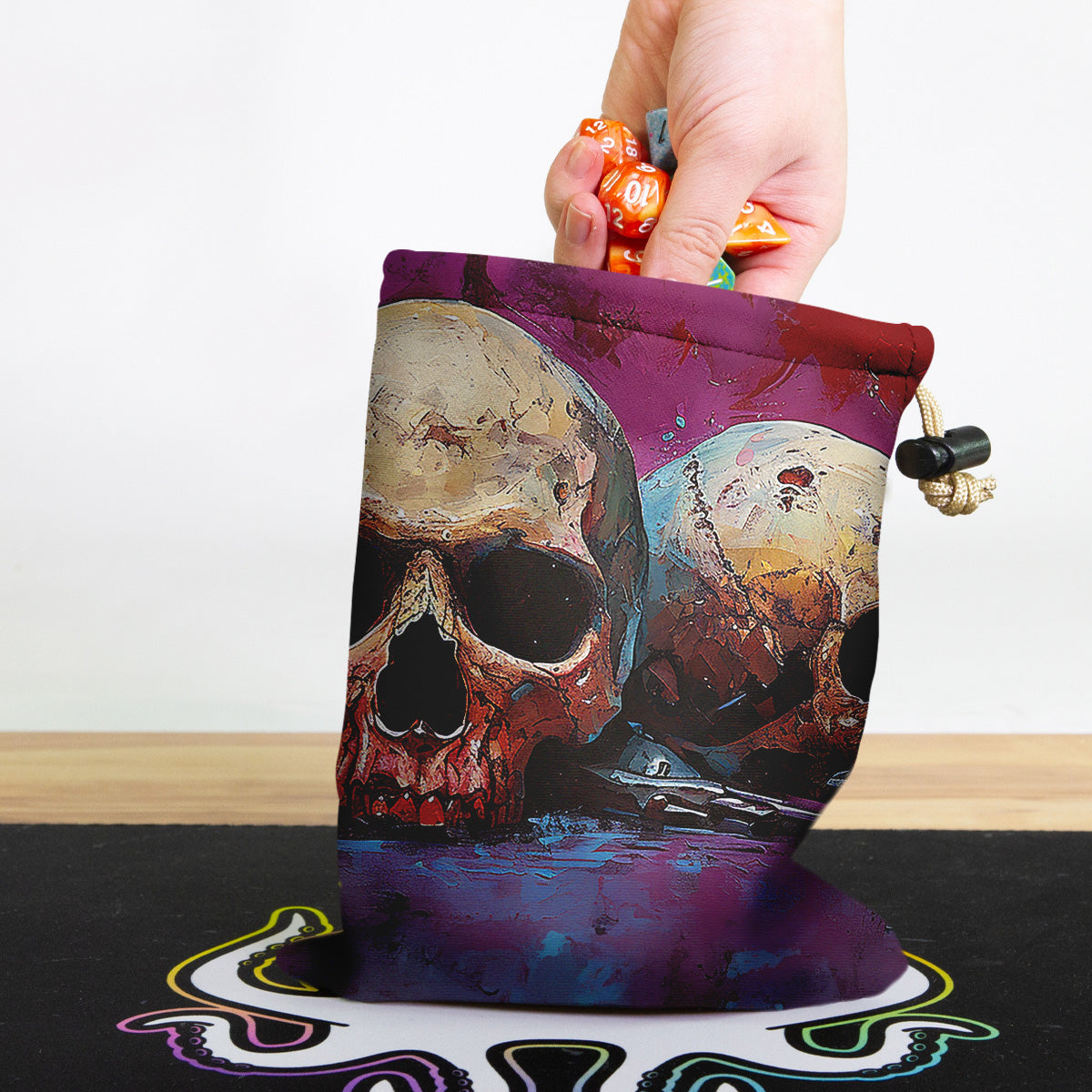 KnerdedAlways gaming on the go? Carry everything you need and more using our specially crafted dice bag. But this bag is designed to hold more than just dice. We make it so you can carry other essential accessories and gear with your dice, including deck boxes, life counters, extra sleeves, and pens. Quality is just as important as quantity, which is why our dice bags are crafted using premium material as well. Featuring a soft inner lining and microfiber on the inside and vibrant pre-designed artwork on the outside, our dice bag has an amazing look and feel to it!