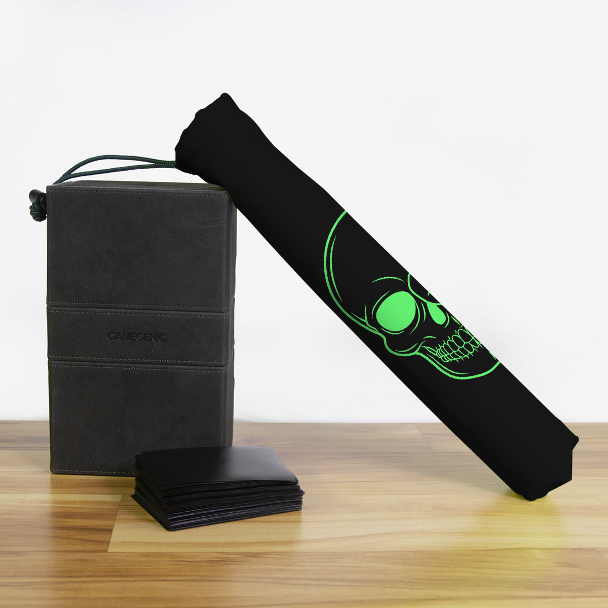 Keep your playmat in pristine condition wherever you go with one of our handcrafted playmat bags. This playmat bag is specifically designed to protect your playmat and can hold two standard sized mats at the same time (in case you need a backup or your friend forgets theirs). Each bag is made in-house and features a water-resistant coating along with a drawstring and carabiner clip for secure carrying. So you can take your game anywhere and in any weather.